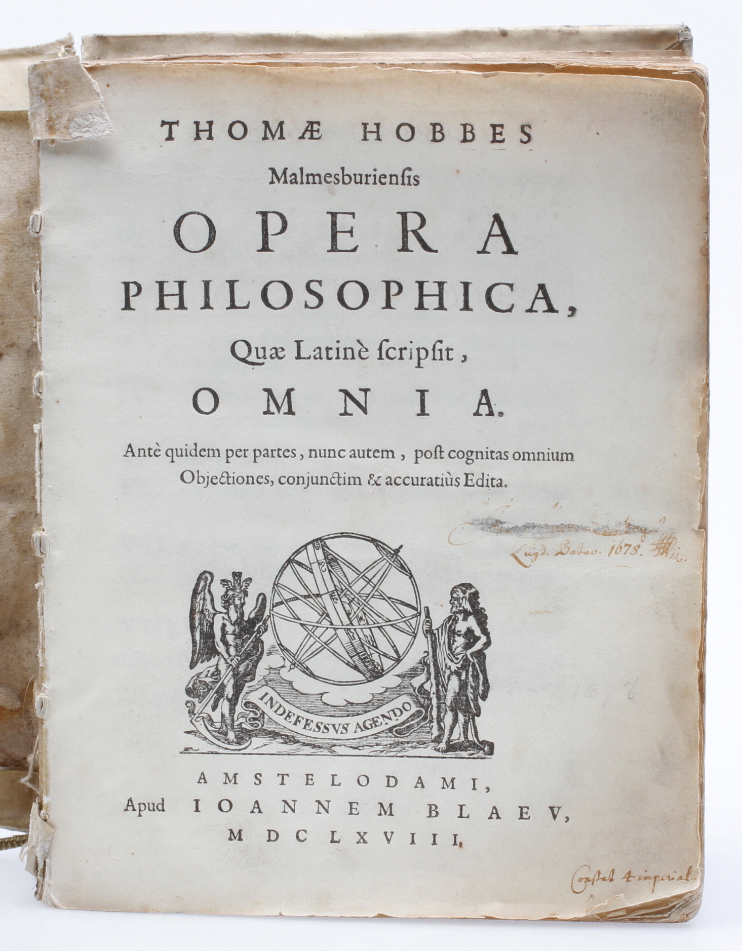 68669. BOK, Opera philosophica omnia, Thomae Hobbes, 1668.