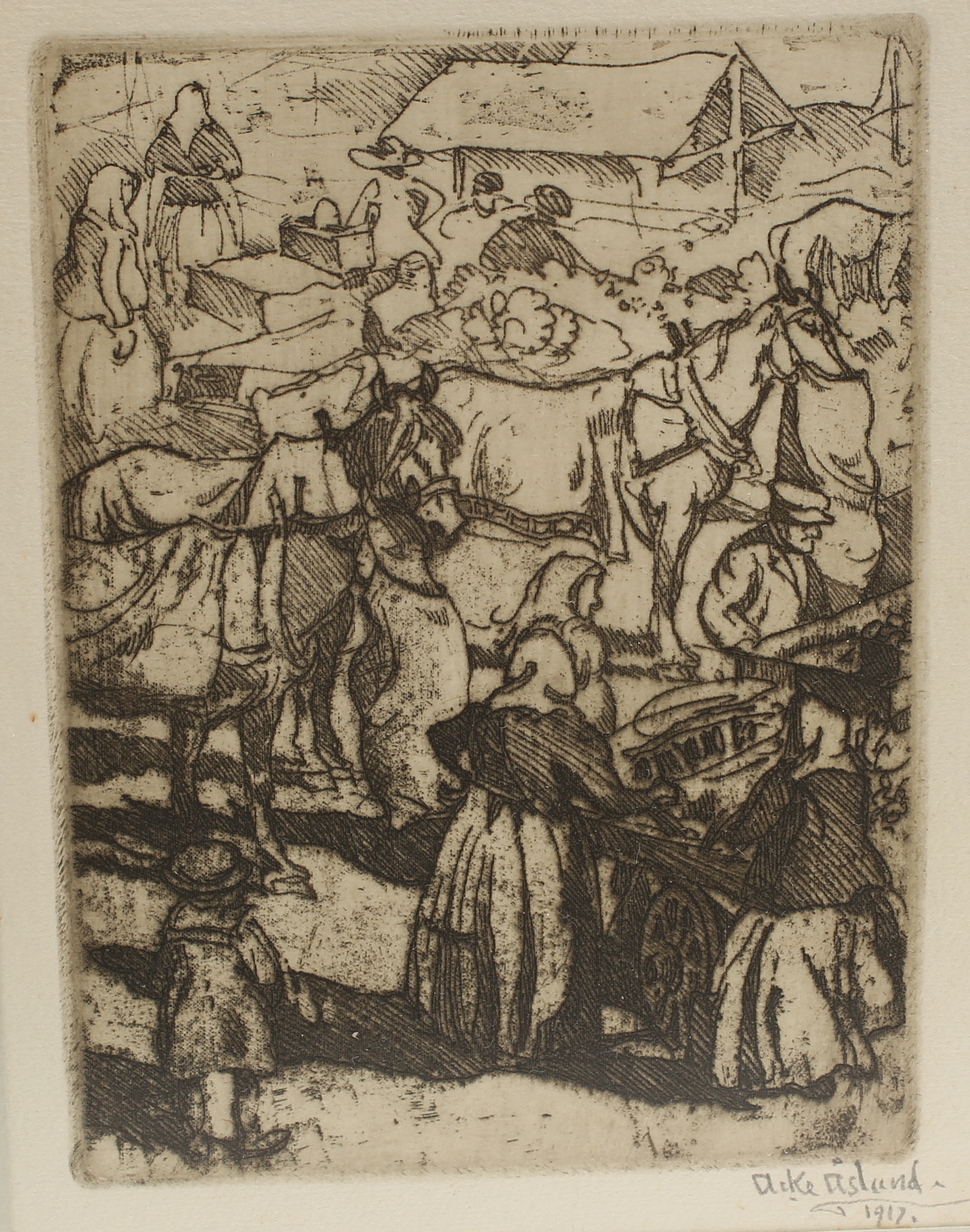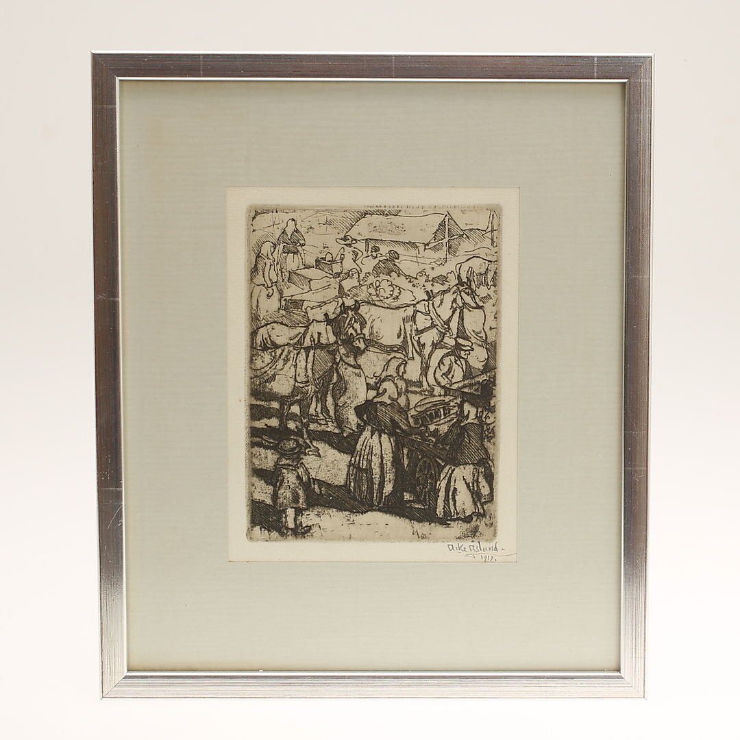 689929. ACKE ÅSLUND. Radering, "Markedsdag" underskrevet 1917.