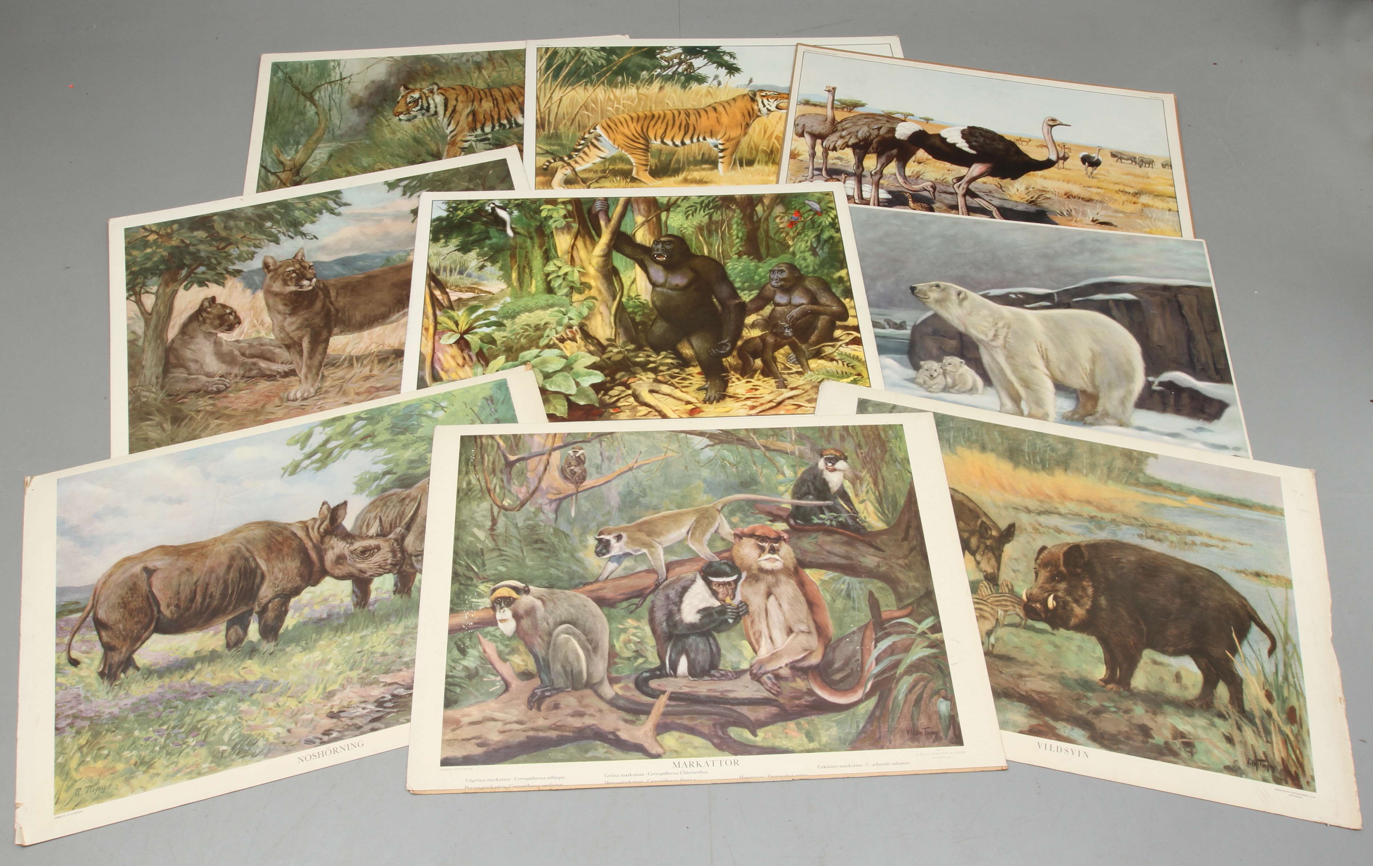 69125. SKOLEPLAKKER, 9 stk, pattedyr, 1900-tallet.