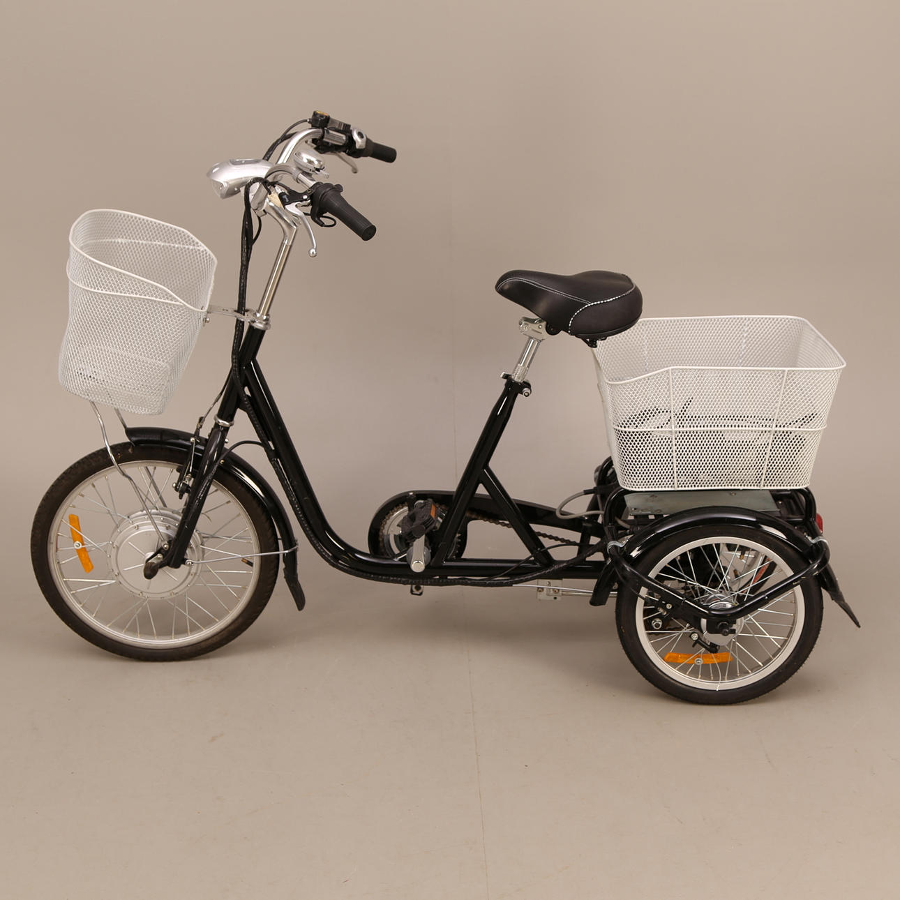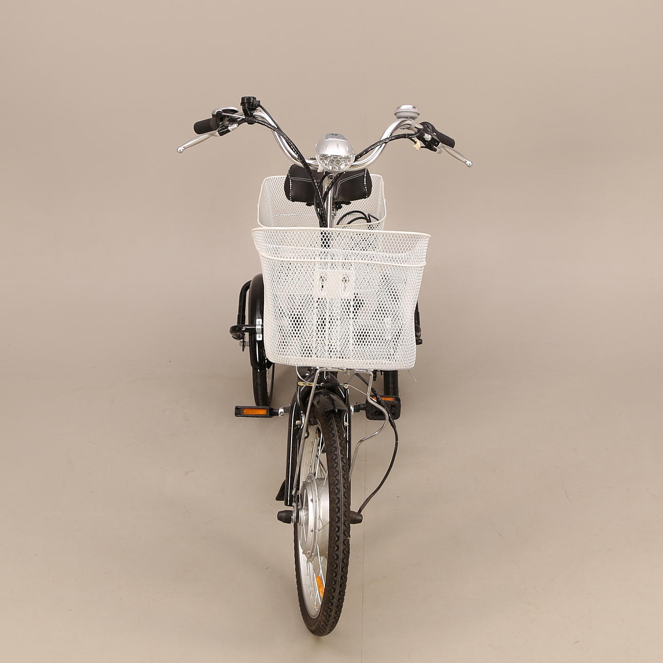 EvoBike er en lille og kompakt elektrisk trehjulet cykel. Rammen har en fjederophængt konstruktion, der giver dig mulighed for at læne dig ind i kurver og genvinde en følelse, der minder meget om en tohjulet bil. Motoren aktiveres automatisk, når du pedaler eller med tommelfingergas (valgfrit at montere). Lakeret stålramme og aftageligt 36V 10Ah lithiumbatteri. To betydelige kurve, belysning og klokke medfølger.