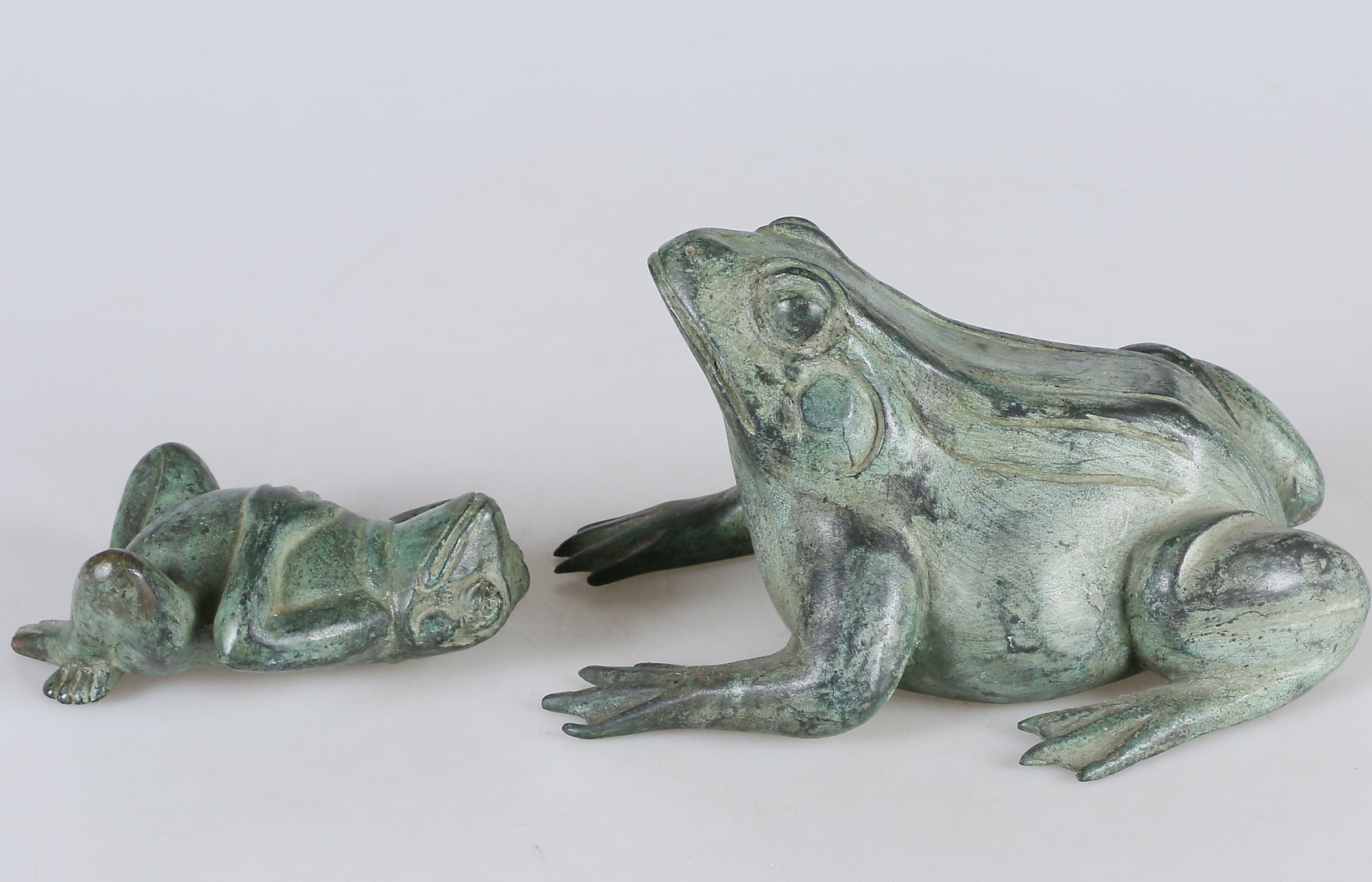 694266. SKULPTURER, 2 stk, frøer, bronze.