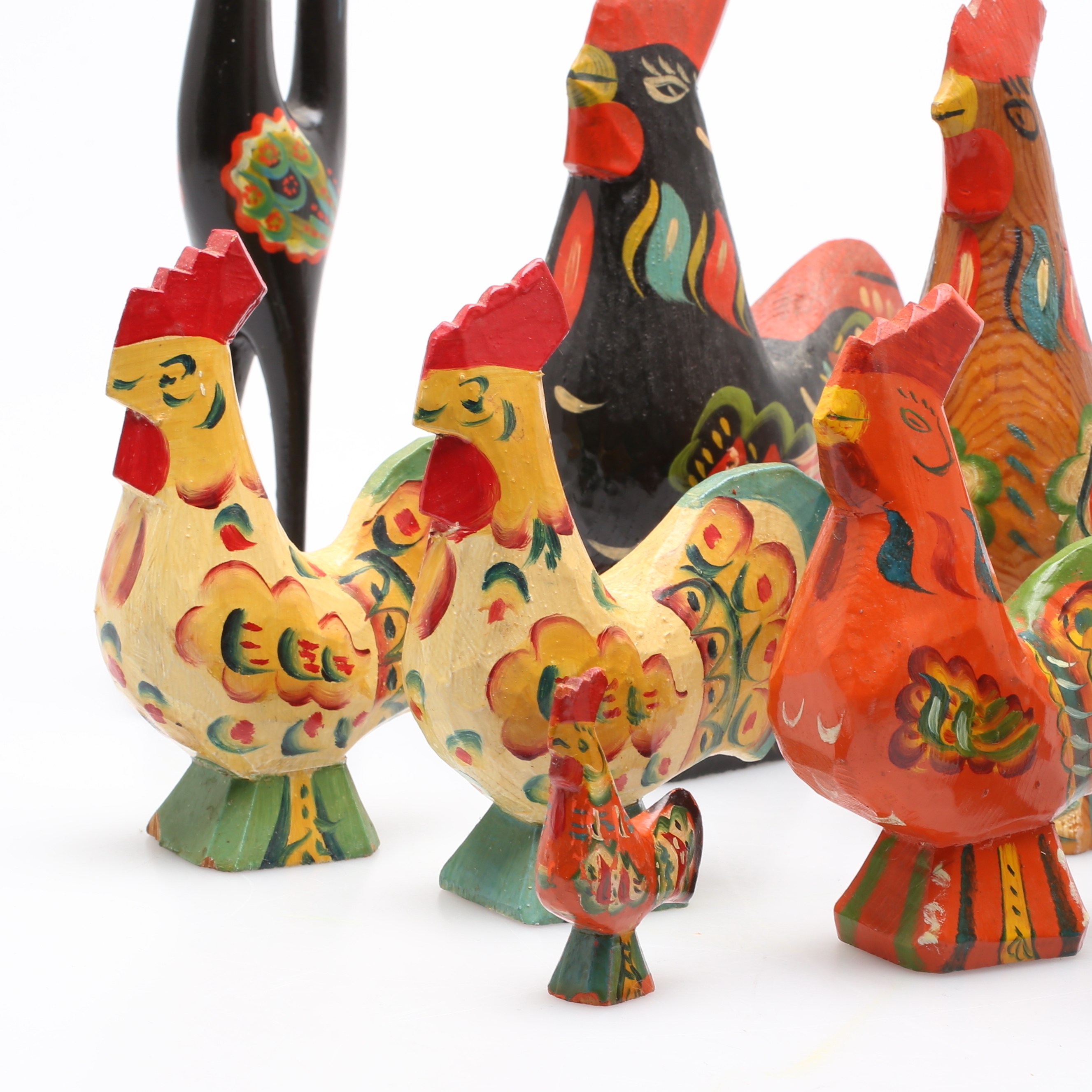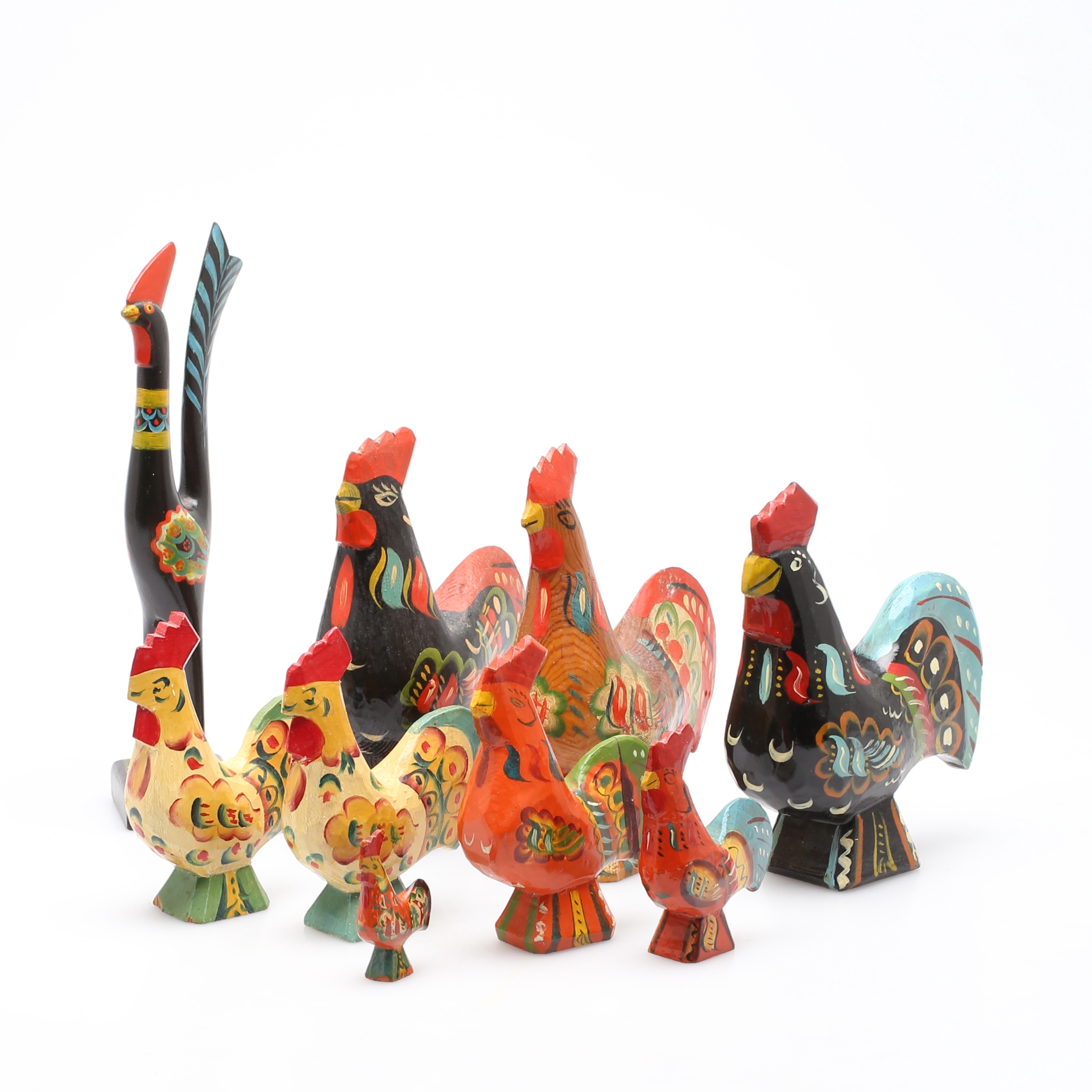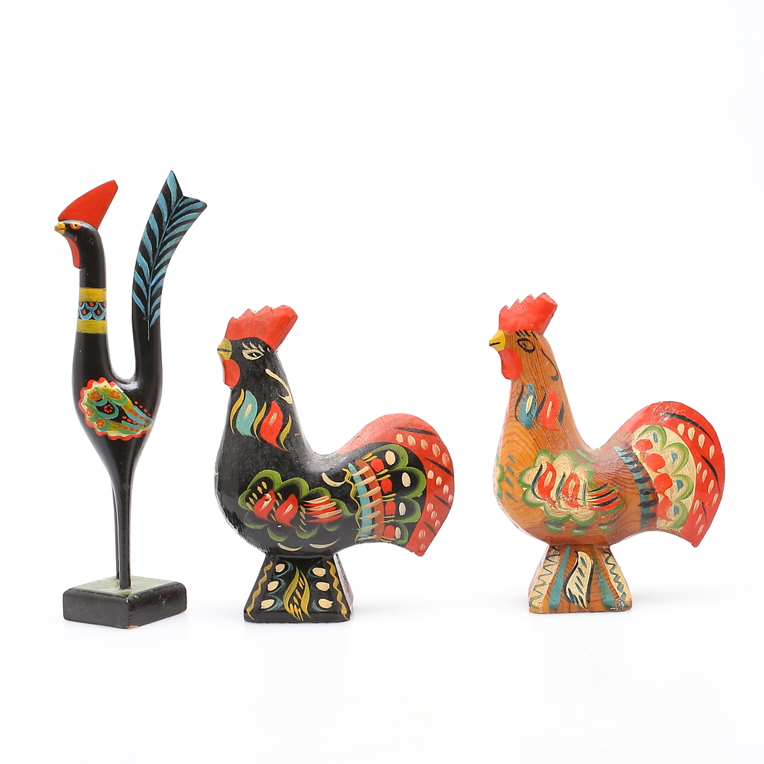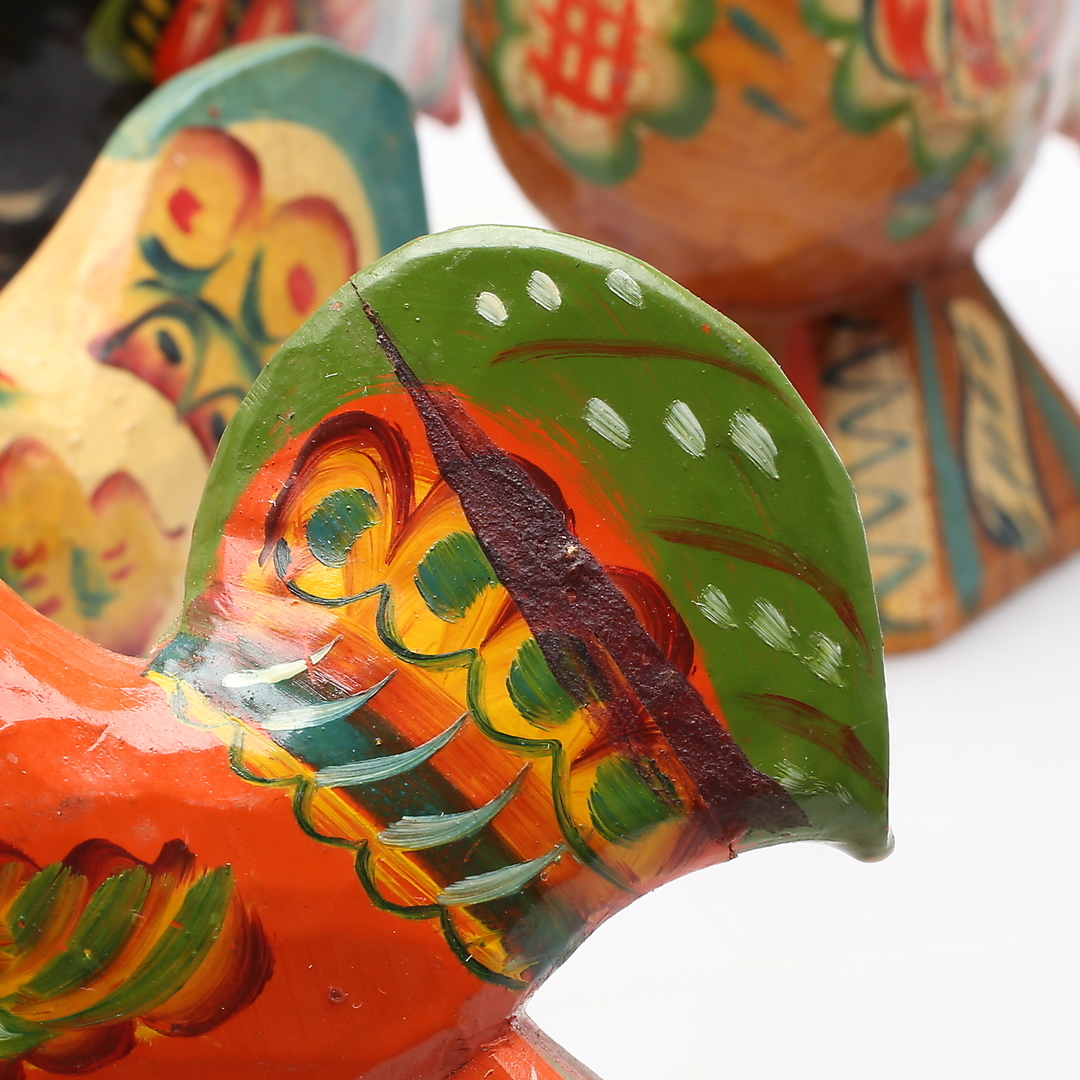 696253. Sæt HANER, 9 stk., malet træ, 1900 tallet.