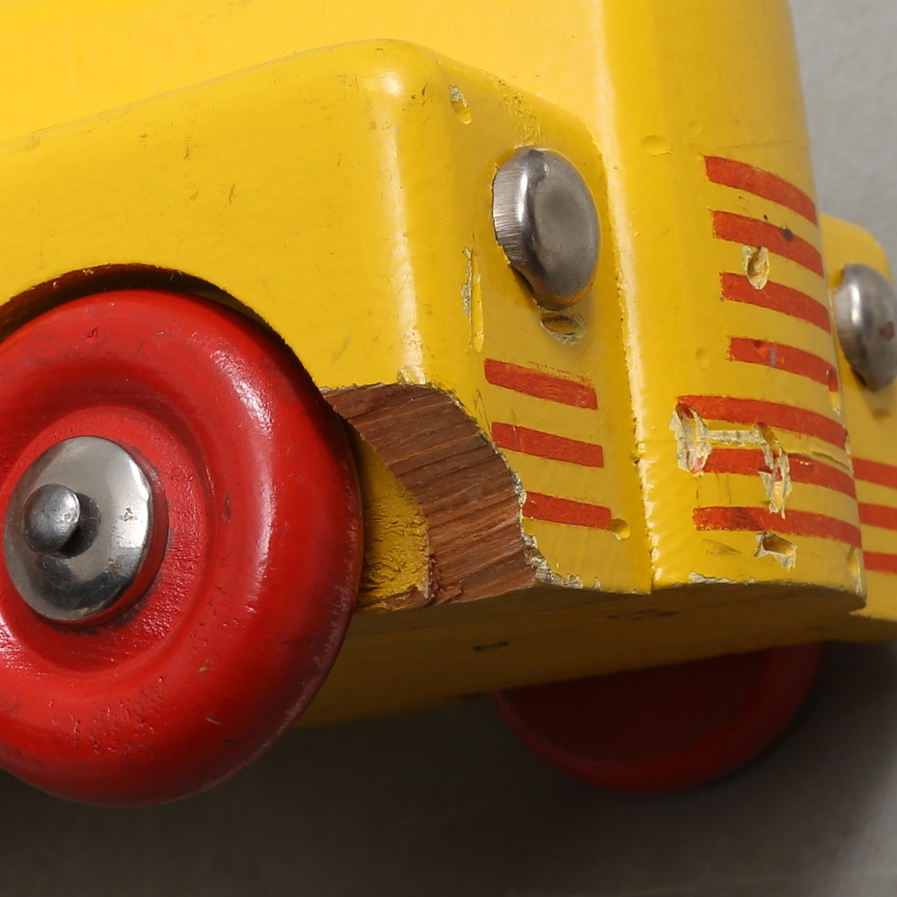 Slitage, stødmærker. Højre forskærm beskadiget.