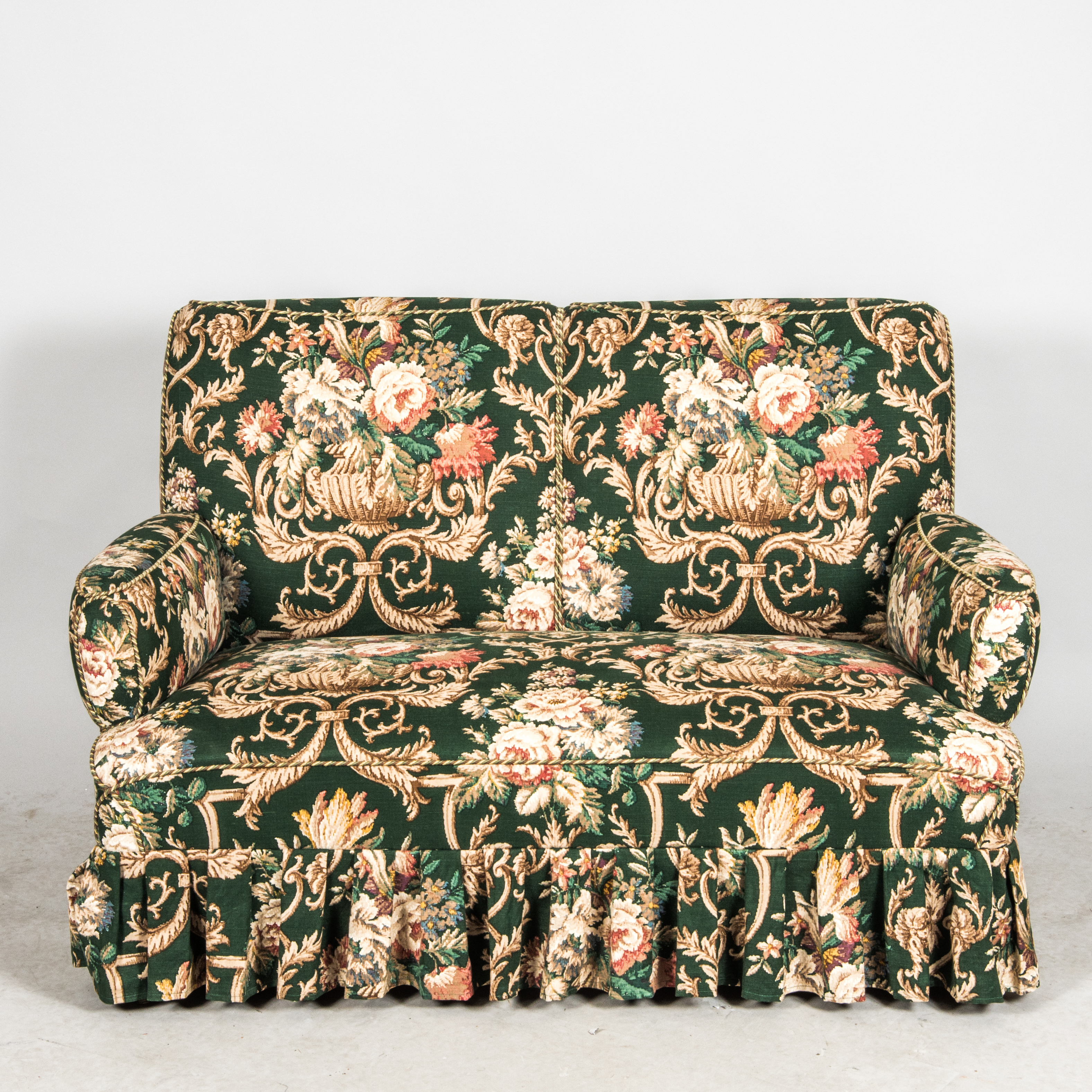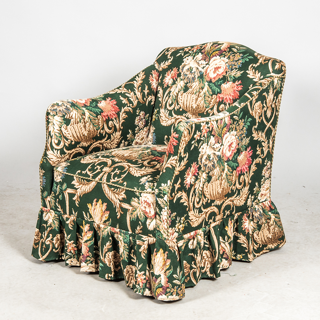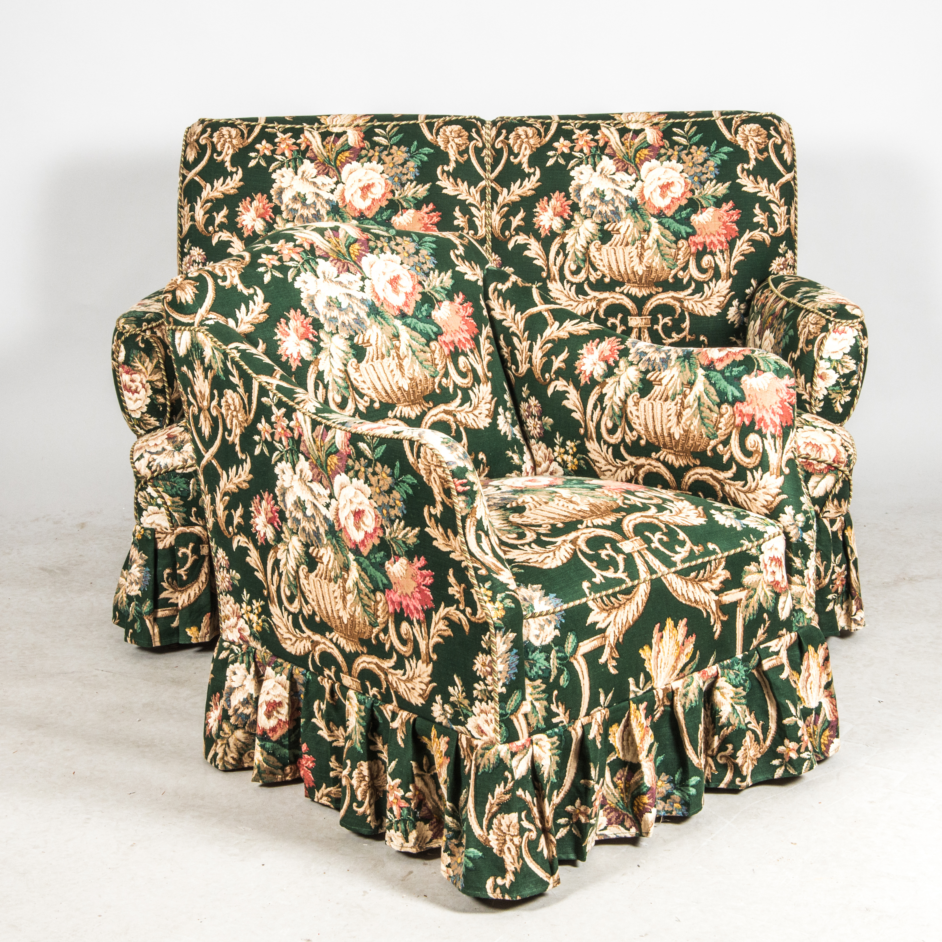 703546. SOFA OG LÆNESTOL, blomstret polstring.