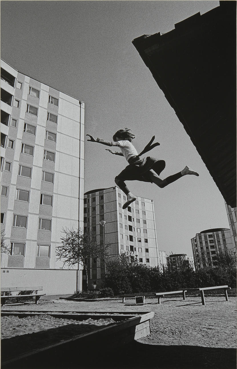 "Dreng i lygtepæl", "Dreng med en pistol" og "Pige hopper på stjernehusene". 37x24 cm. Fotoserie taget mellem 1974-1980, som afbilder forskellige dele af Frölunda.