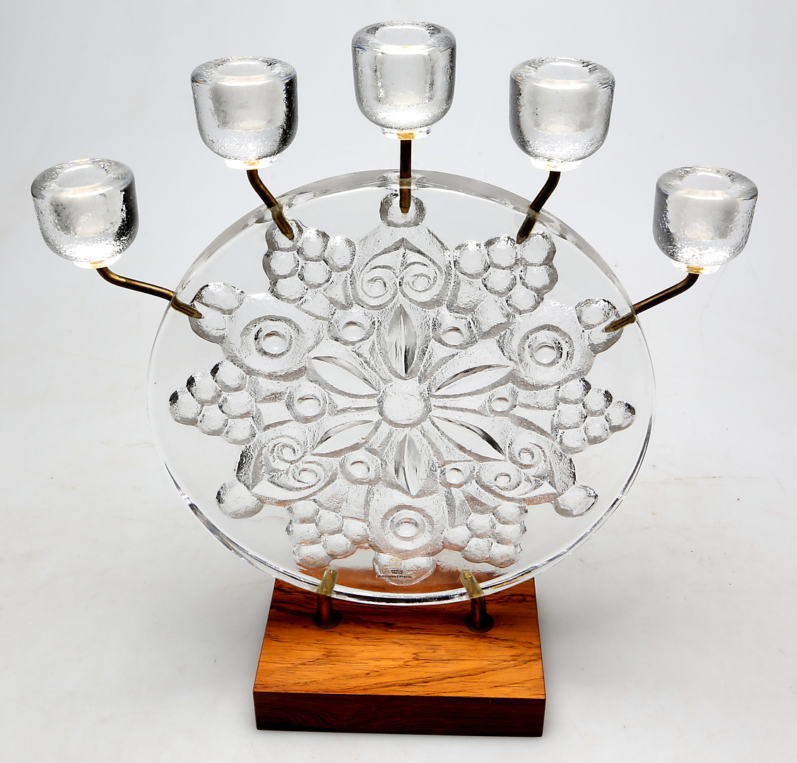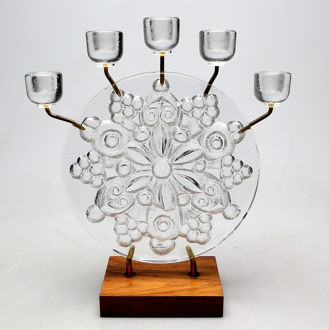 707581. LARS HELLSTEN. KANDELABER, glas, metal, træ, midten af det 20. århundrede.