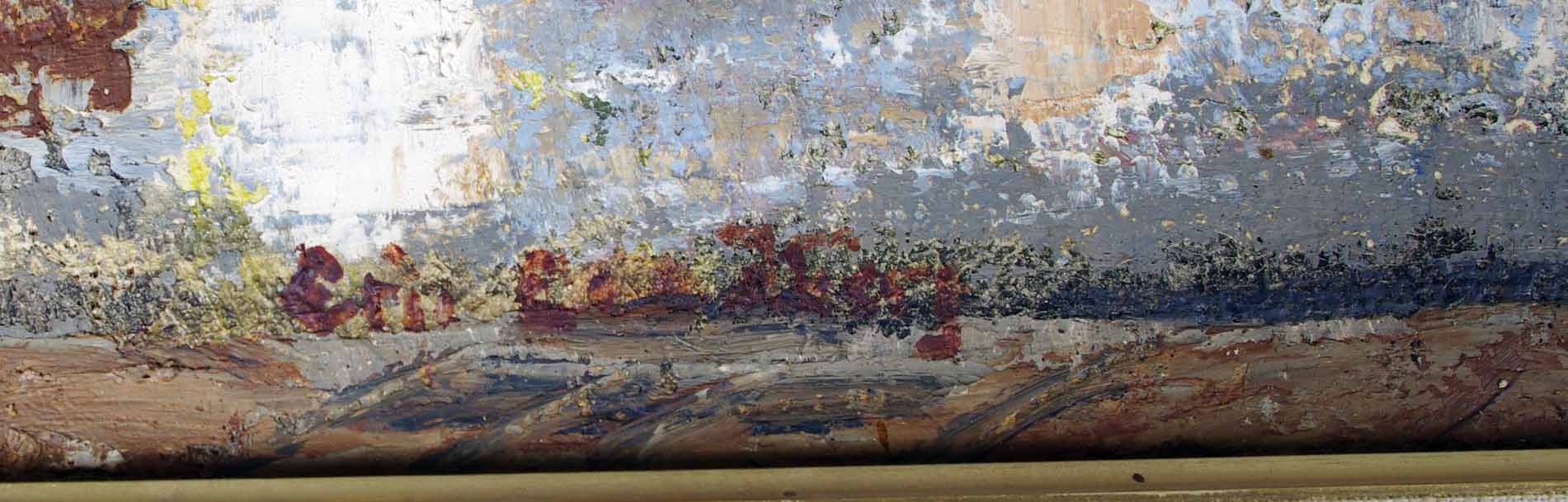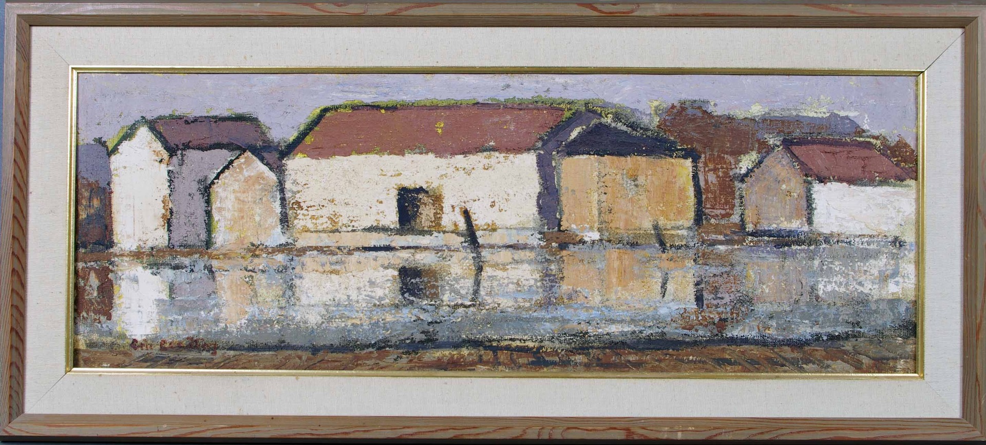 71060. ERIC LUNDBERG. Hus ved vandet, olie på lærred.