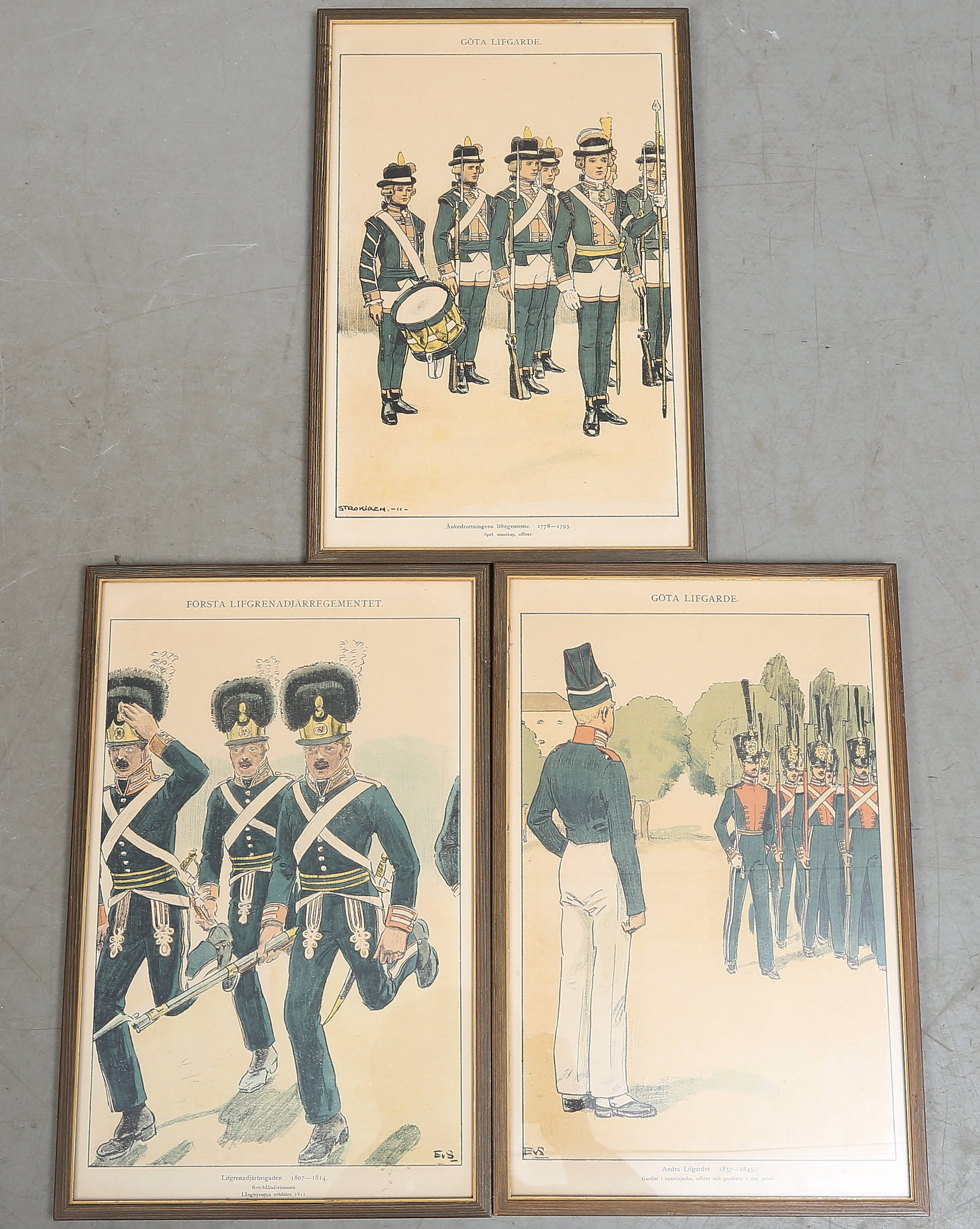 714829. UNIFORM PLADER, 7 dele, litografiske tryk, 20. århundrede.