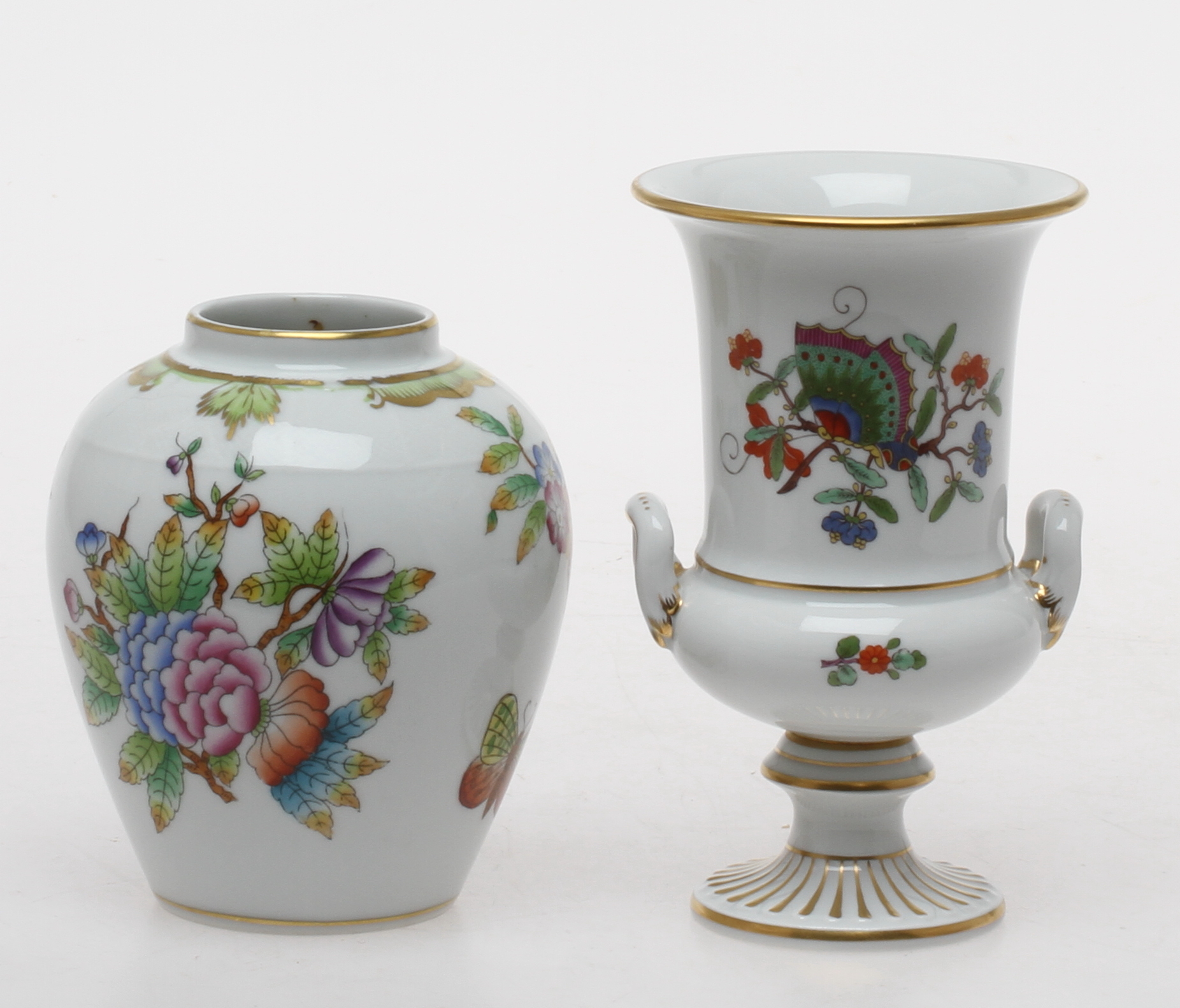 72111. URNOR, 2 stk, Meissen og Herend, 1900-tallet.