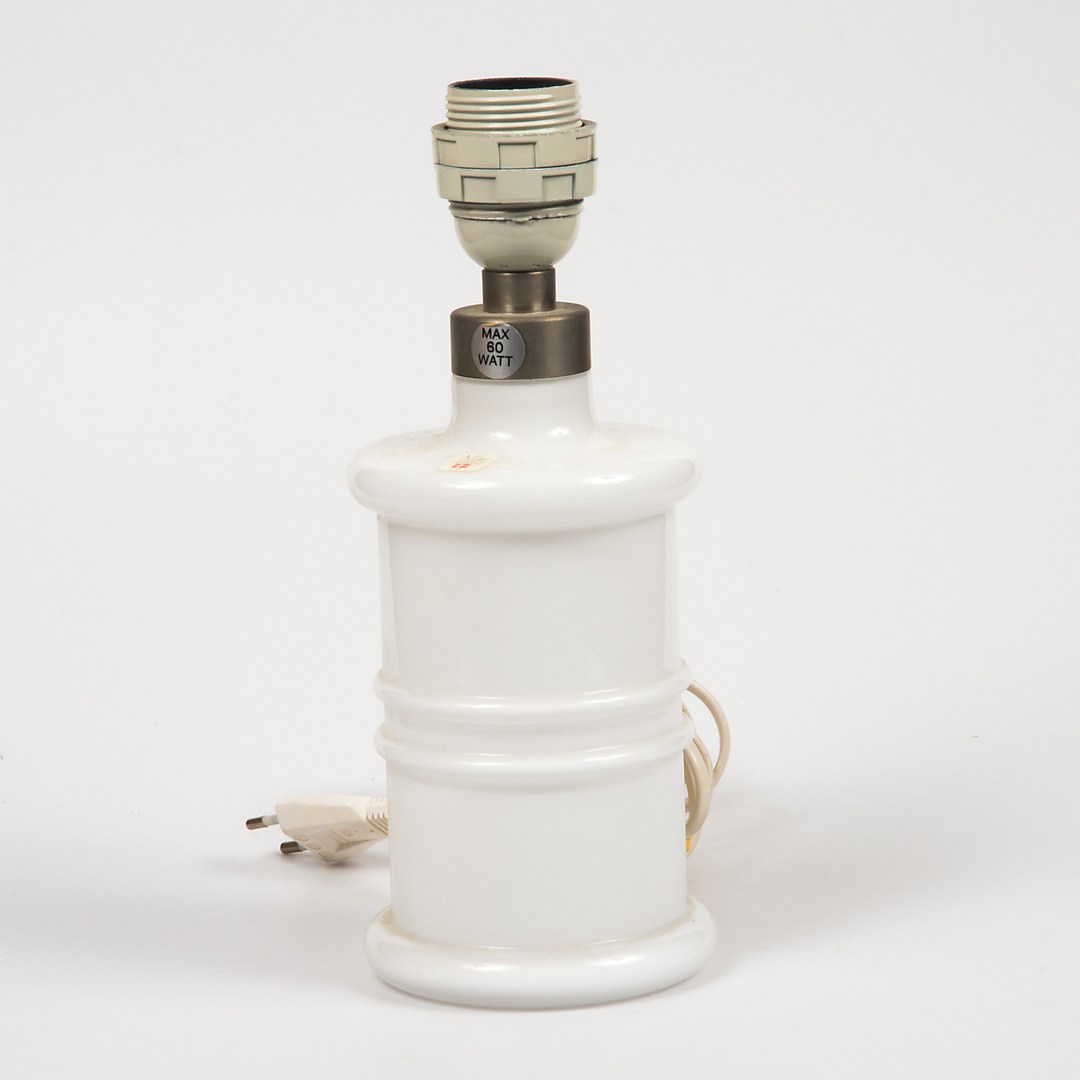 722043. YDERFOER OG BORDLAMPE, 4 dele, hvidt glas.