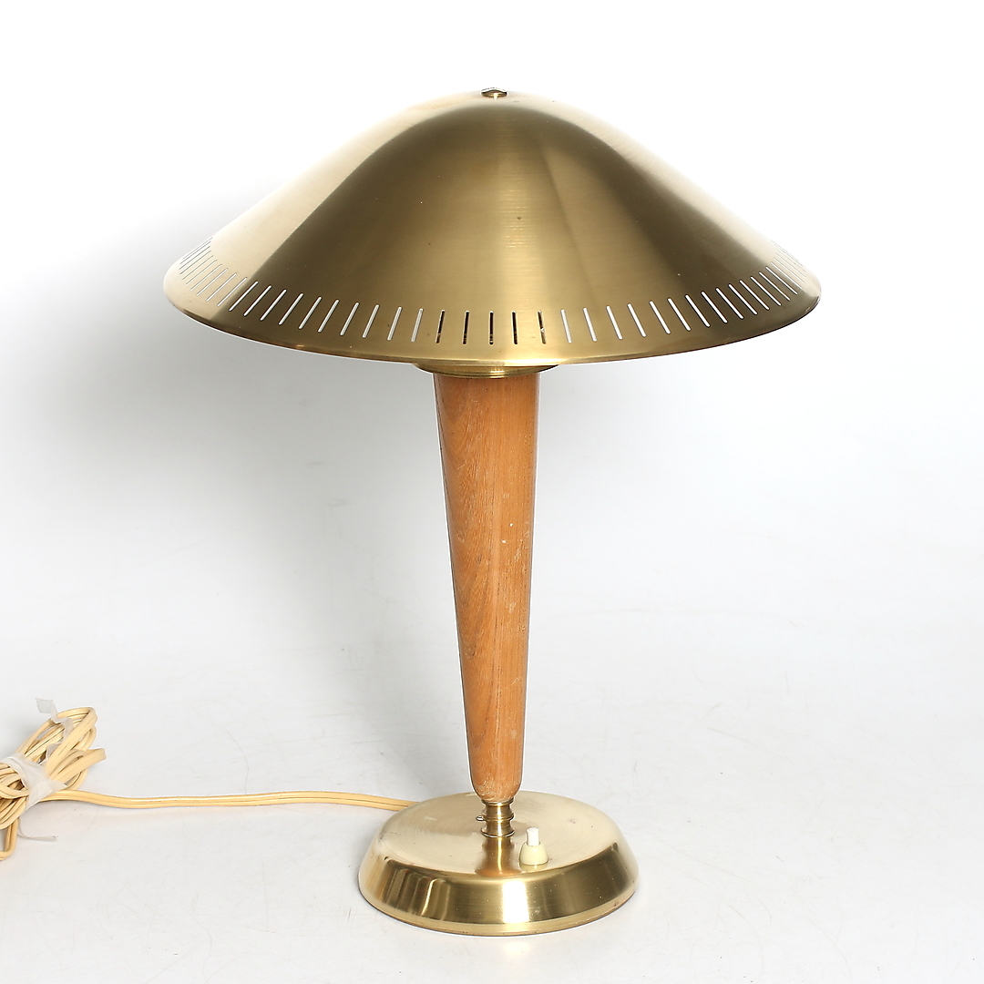 728851. BORDLAMPE, messing, træ, ASEA, 1900-tallet.