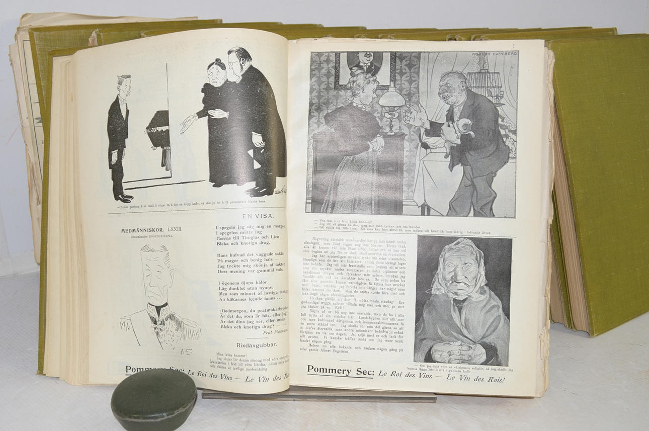 Årgang 1-14, 14 forlagsbind. Omkring 700 numre indbundet i forlagets grønt dekorerede kuglebind. rigt illustreret.