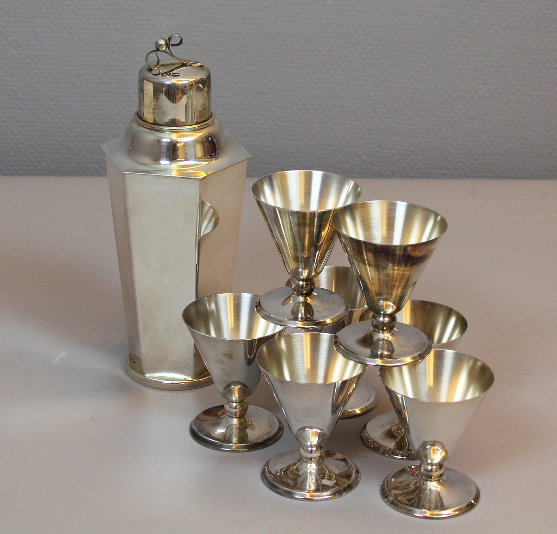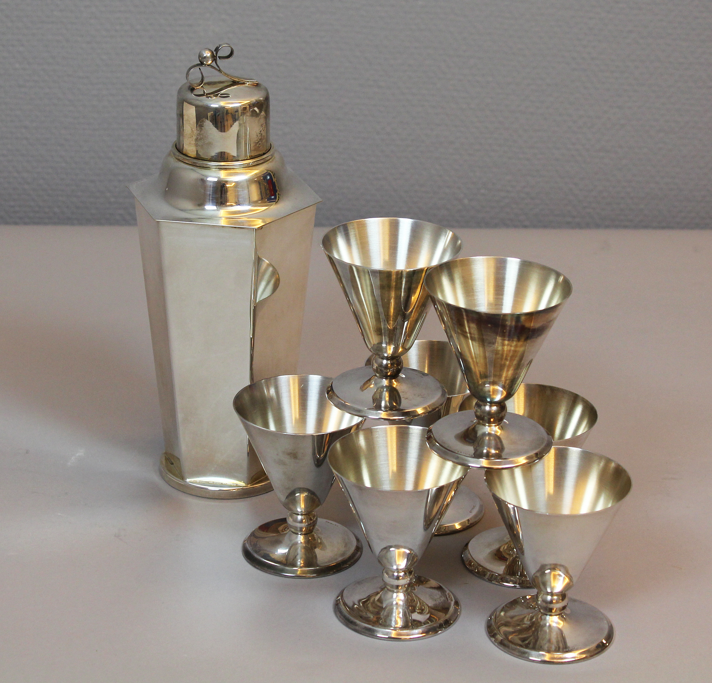 73256. COCTAIL GLAS OG RYSTE, 7 + 1, nysølv.