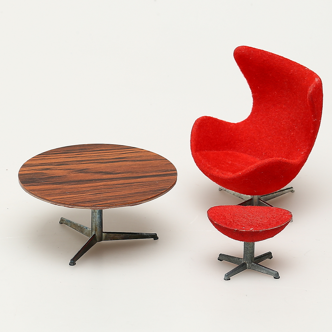 733377. DUKKE MØBLER, 5 dele, efter Arne Jacobsen, formentlig Brio.