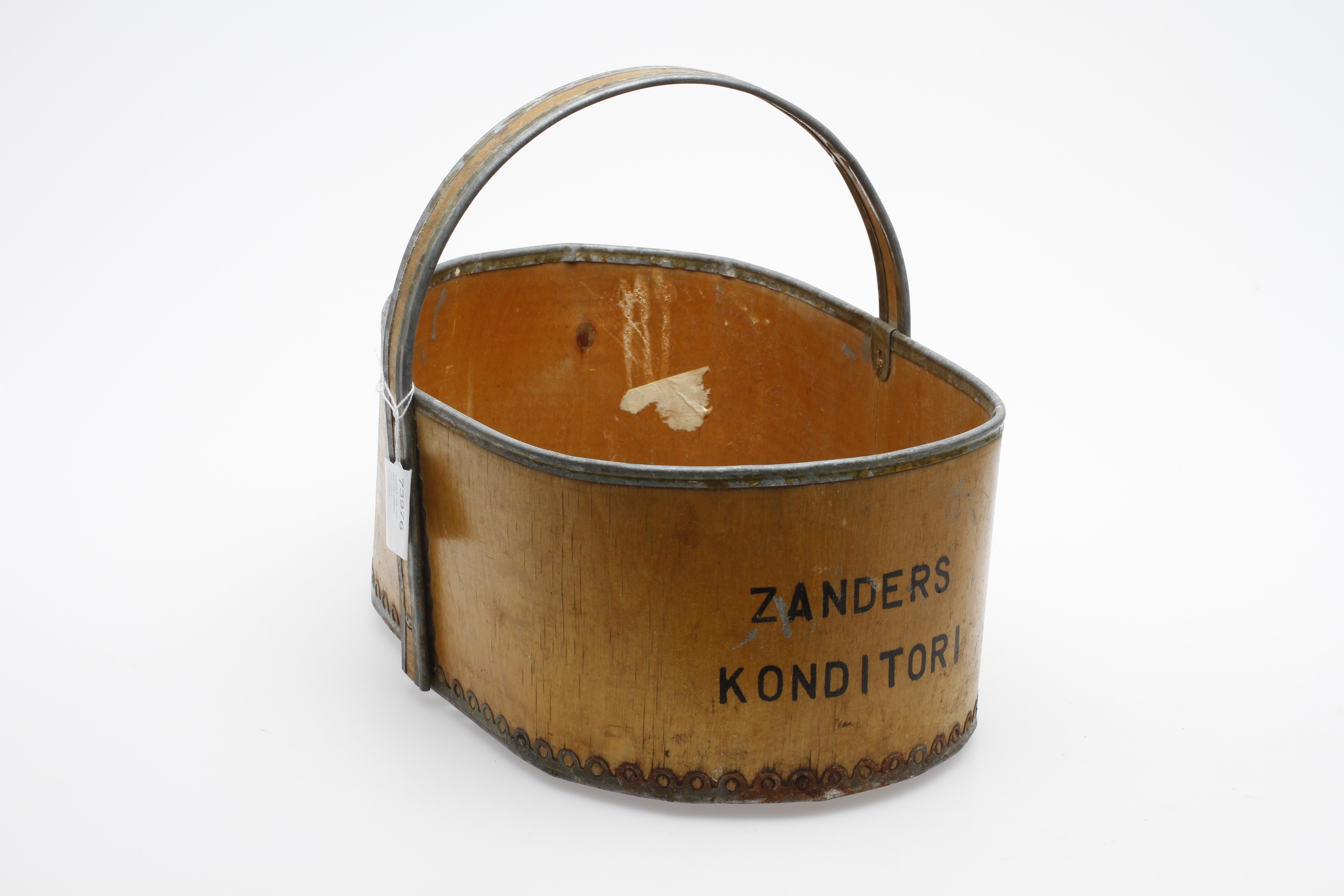 73976. KURV, træ og metal, mærket Zanders konditori.