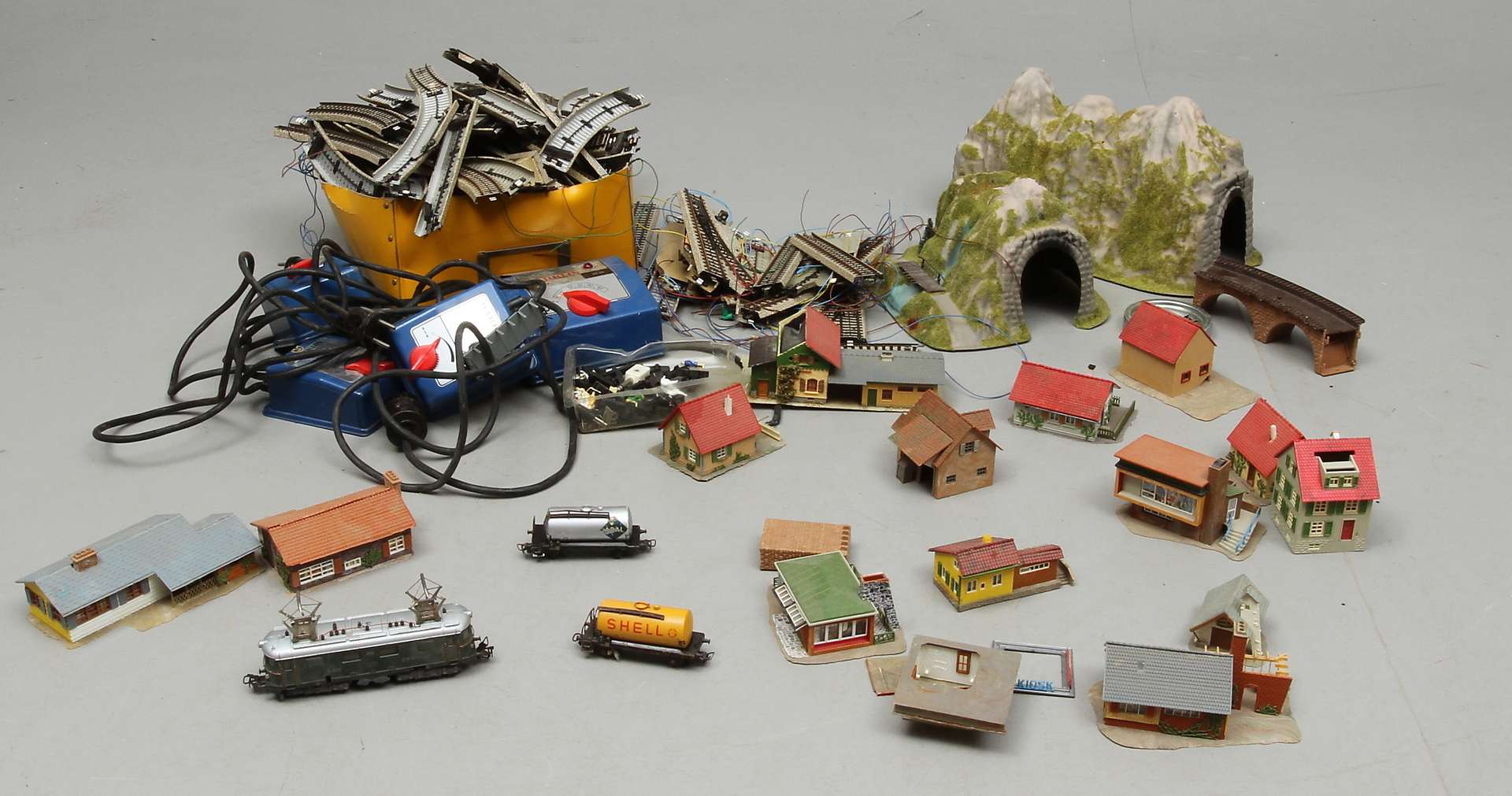74166. MODEL TRAIN MÄRKLIN E-lok RET800, skinner, gear, vogne, huse, transformer og mere.