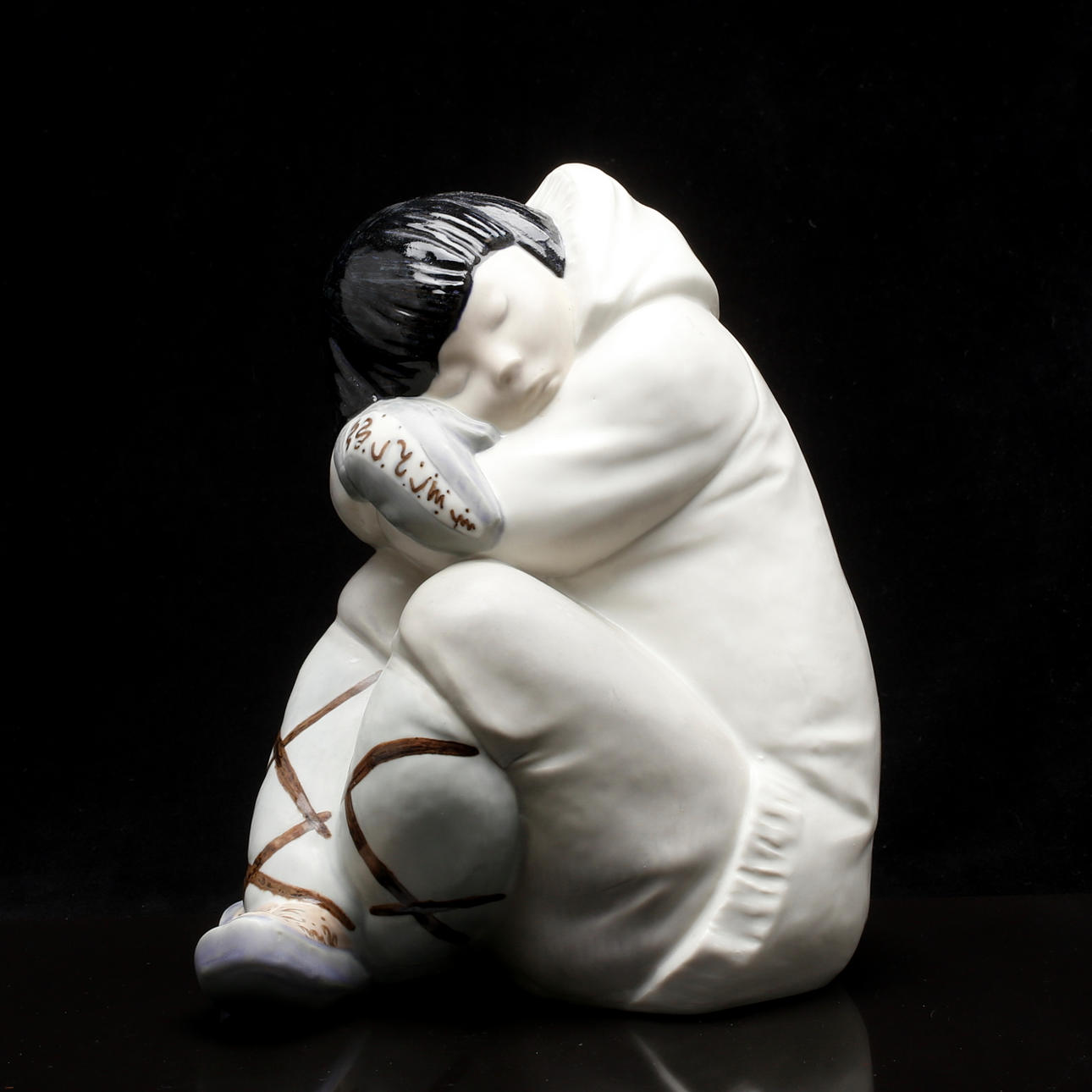 FIGUR, stentøj, siddende eskimo, Lladro.