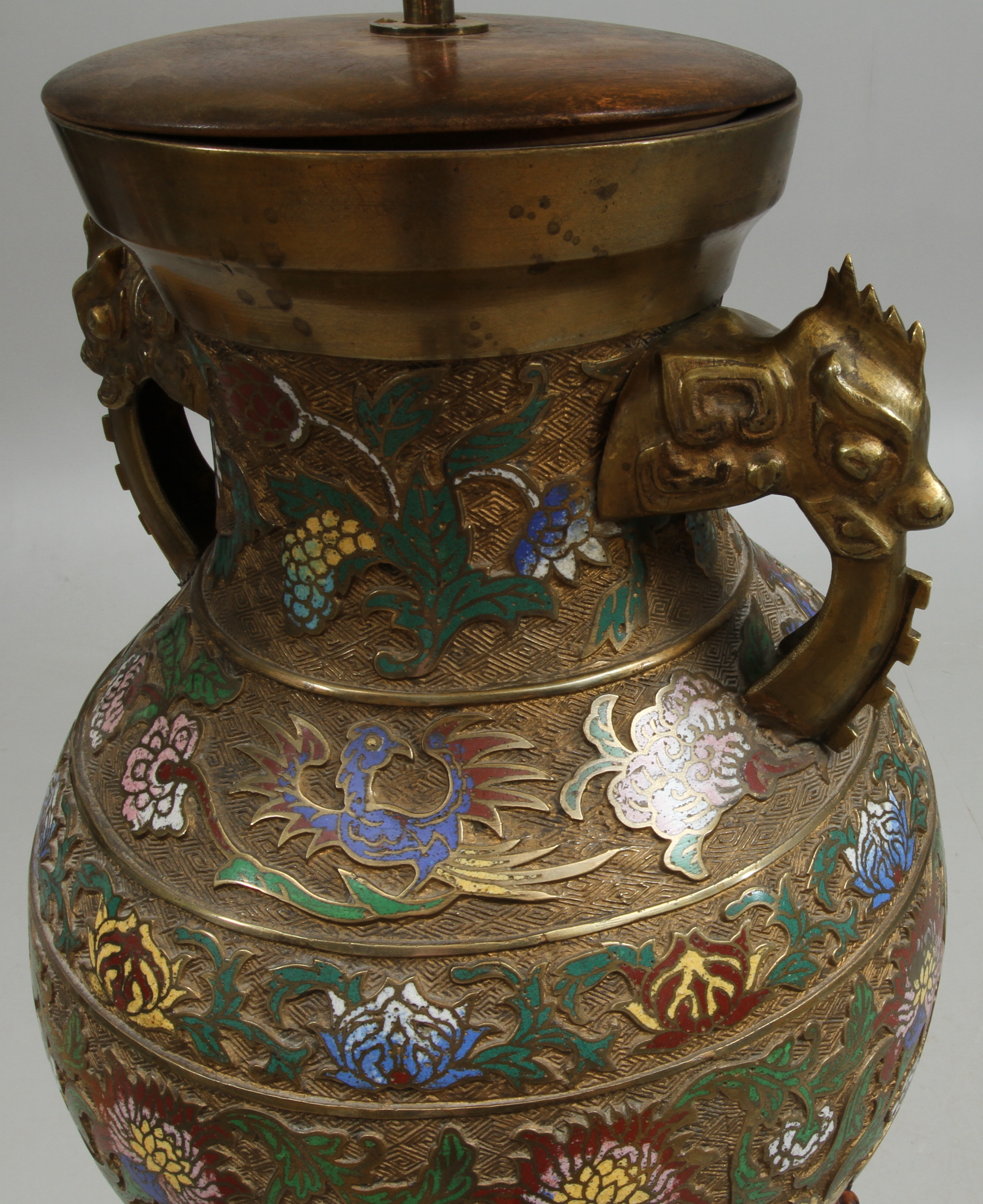 74709. URNA, cloisonné, orientalsk, på piedestal.