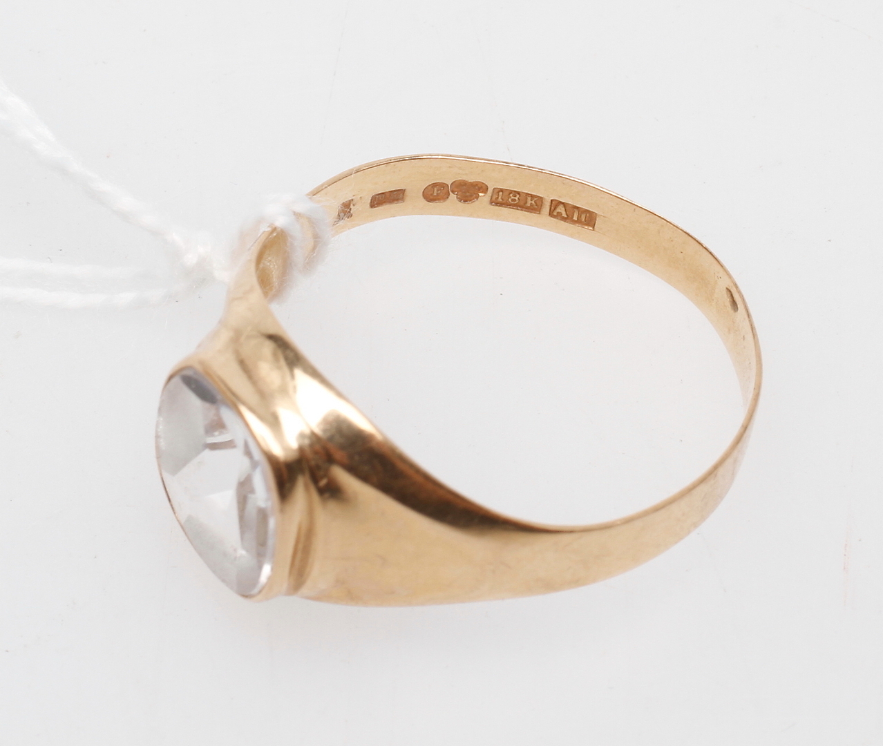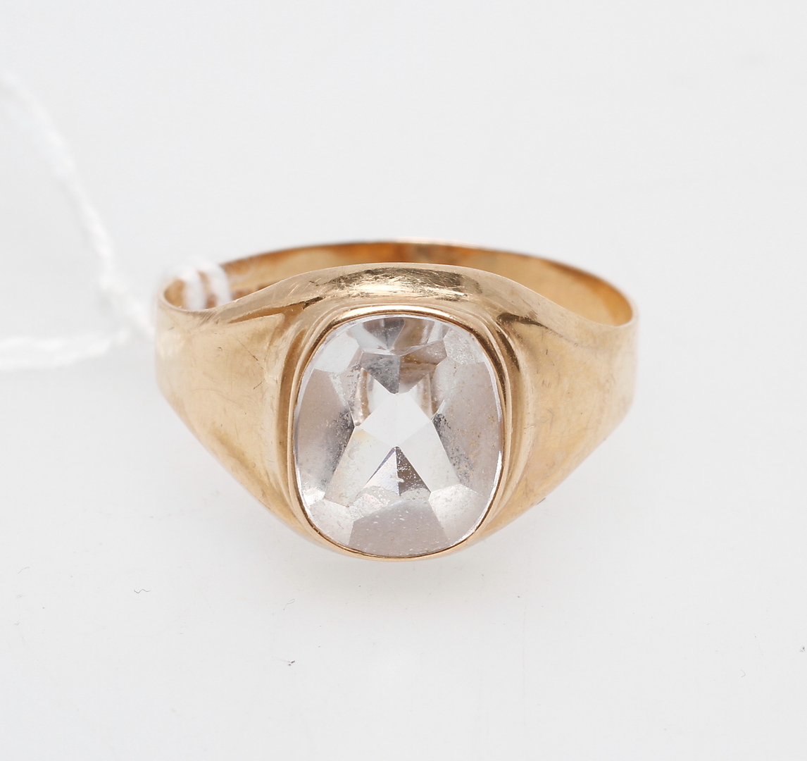 74735. RING, 18k guld, med hvid sten, totalvægt ca. 3,2 gr.