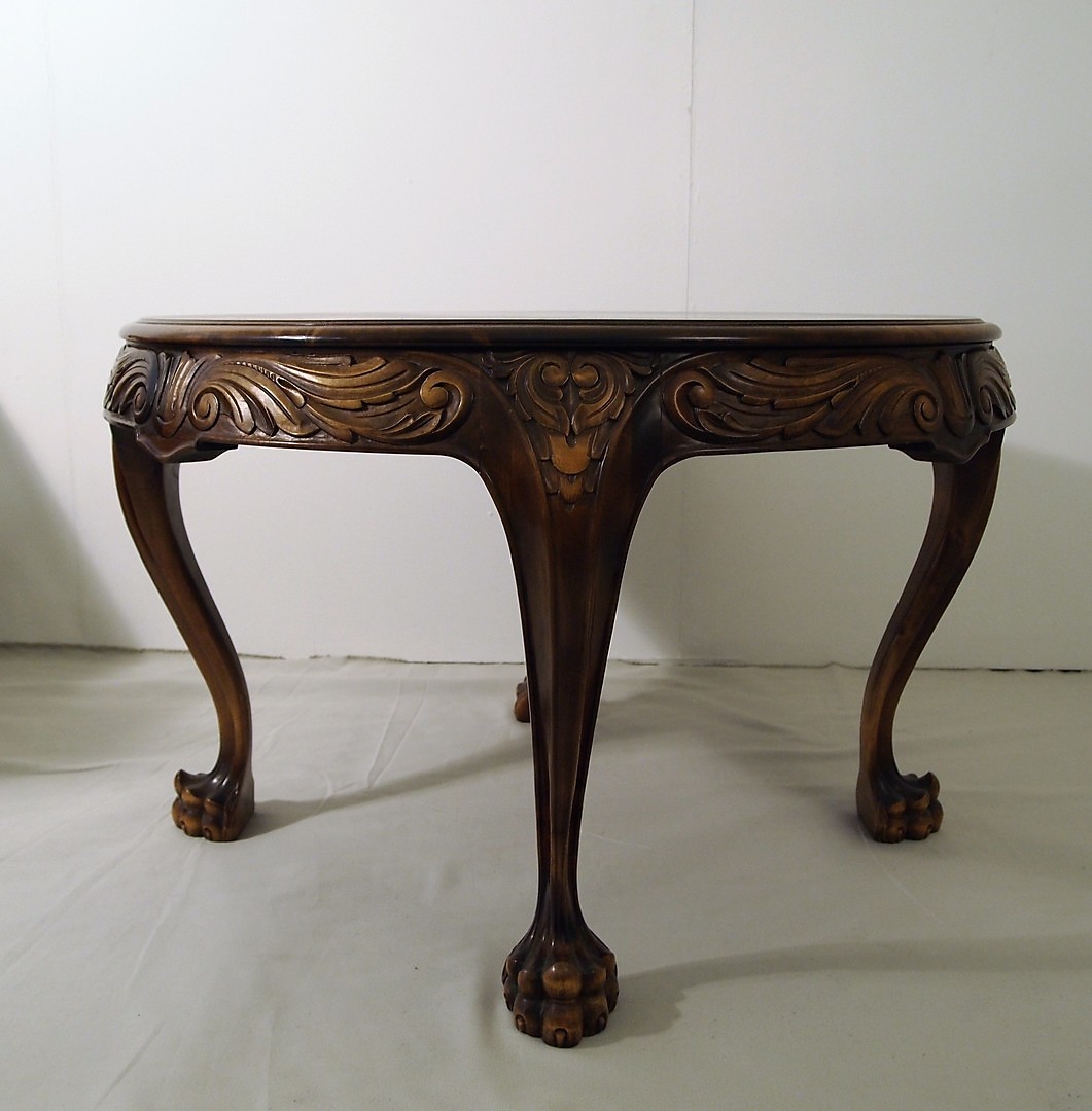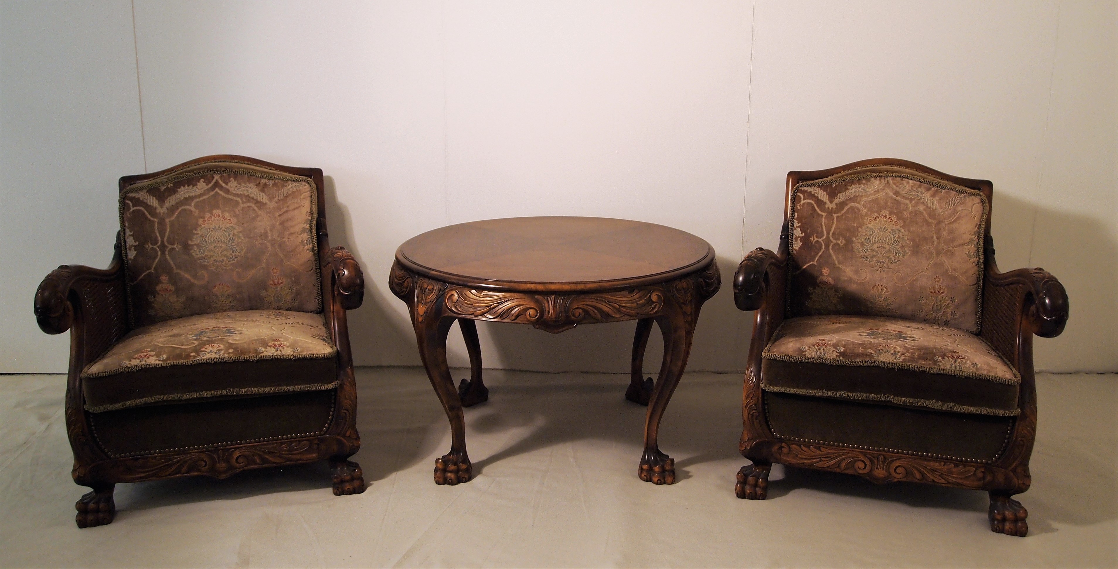 754937. ET PAR LÆNESTOLE MED BORD, CHIPPENDALE.