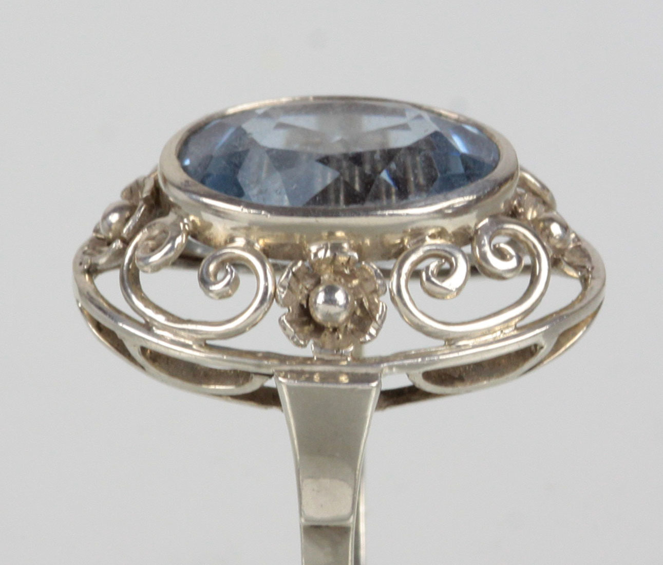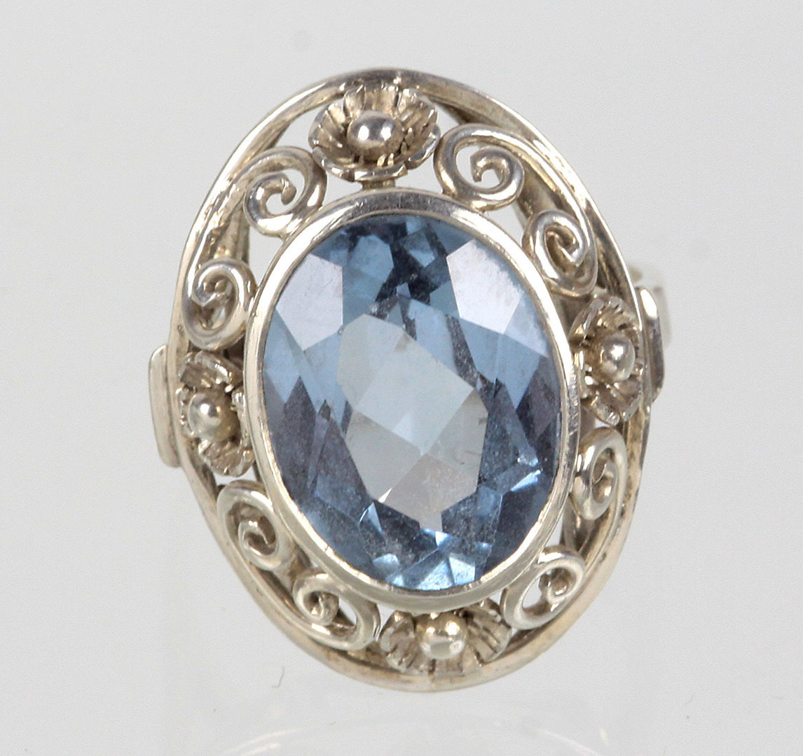 756808. ART DECO RING MED AQUAMARINE SPINEL 835 sølv.