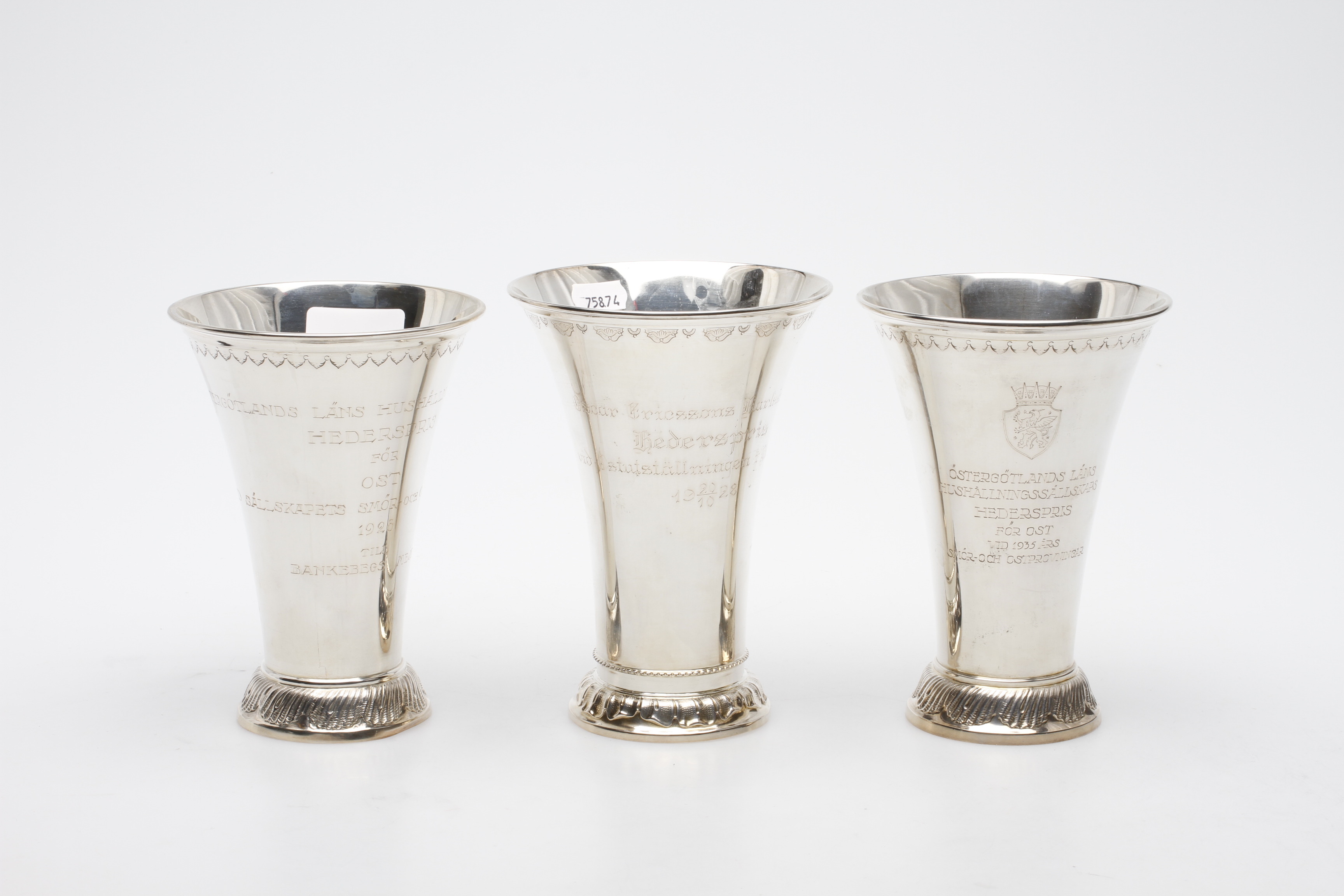 75874. VASER, 3 stk, rokoko stil, vægt ca. 628,7 gram.