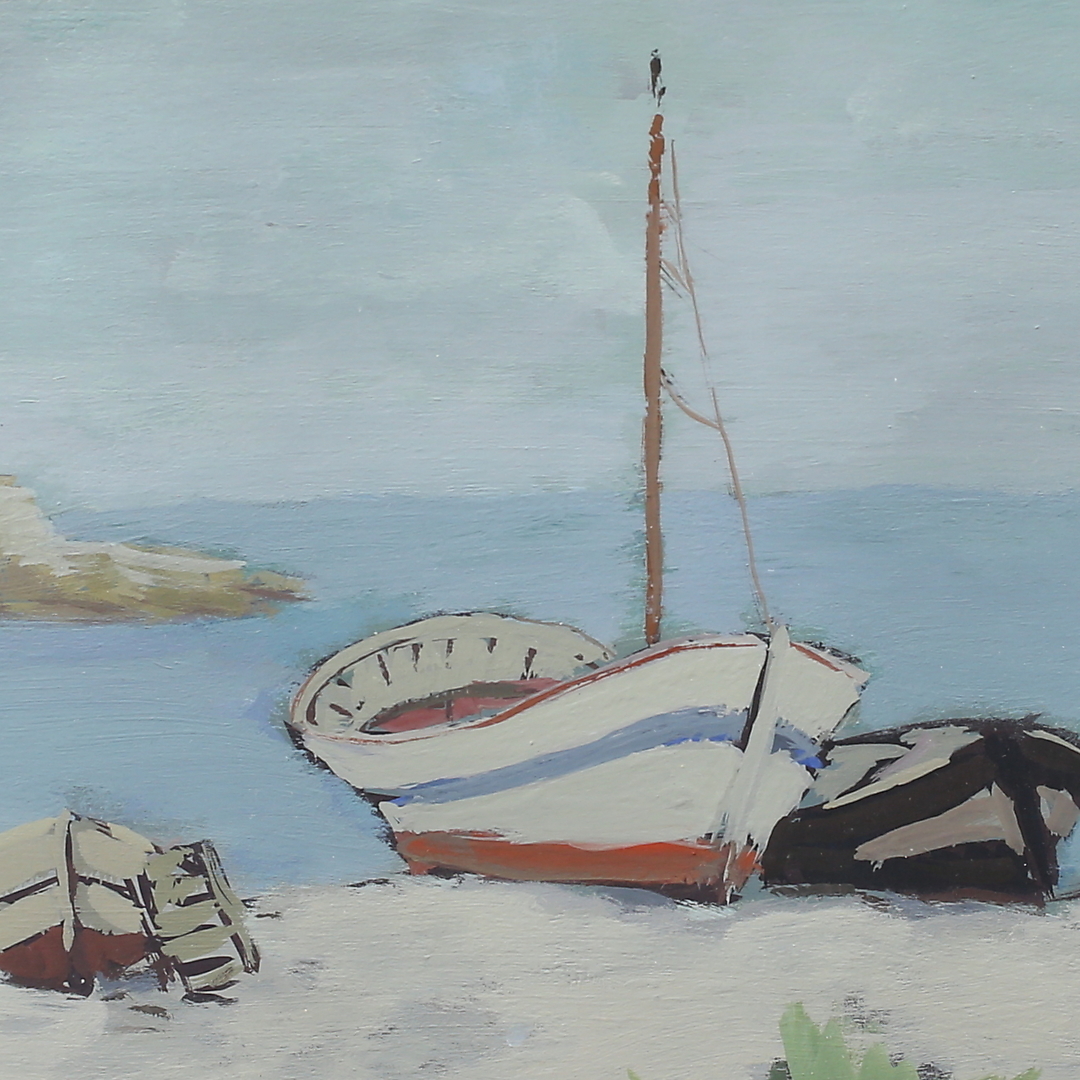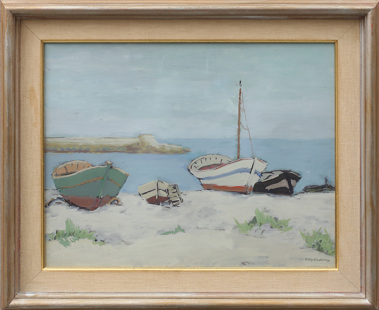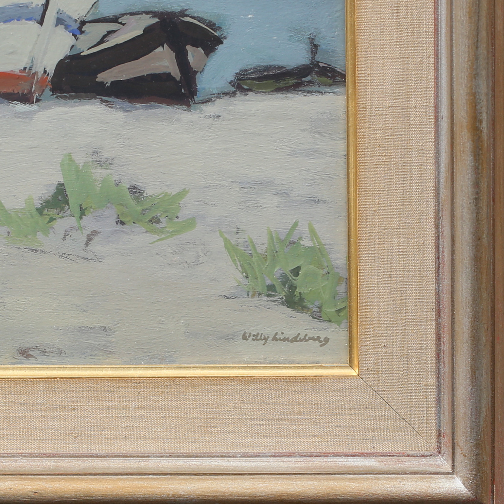 764711. WILLY LINDEBERG. gouache, tegnede både, sign.