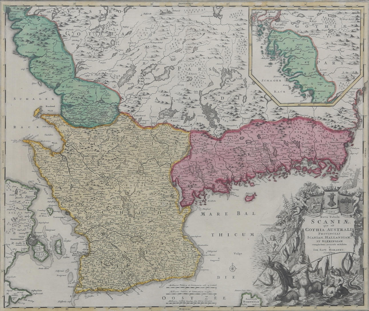 KORT OVER SKÅNE, HALLAND OG BLEKINGE.