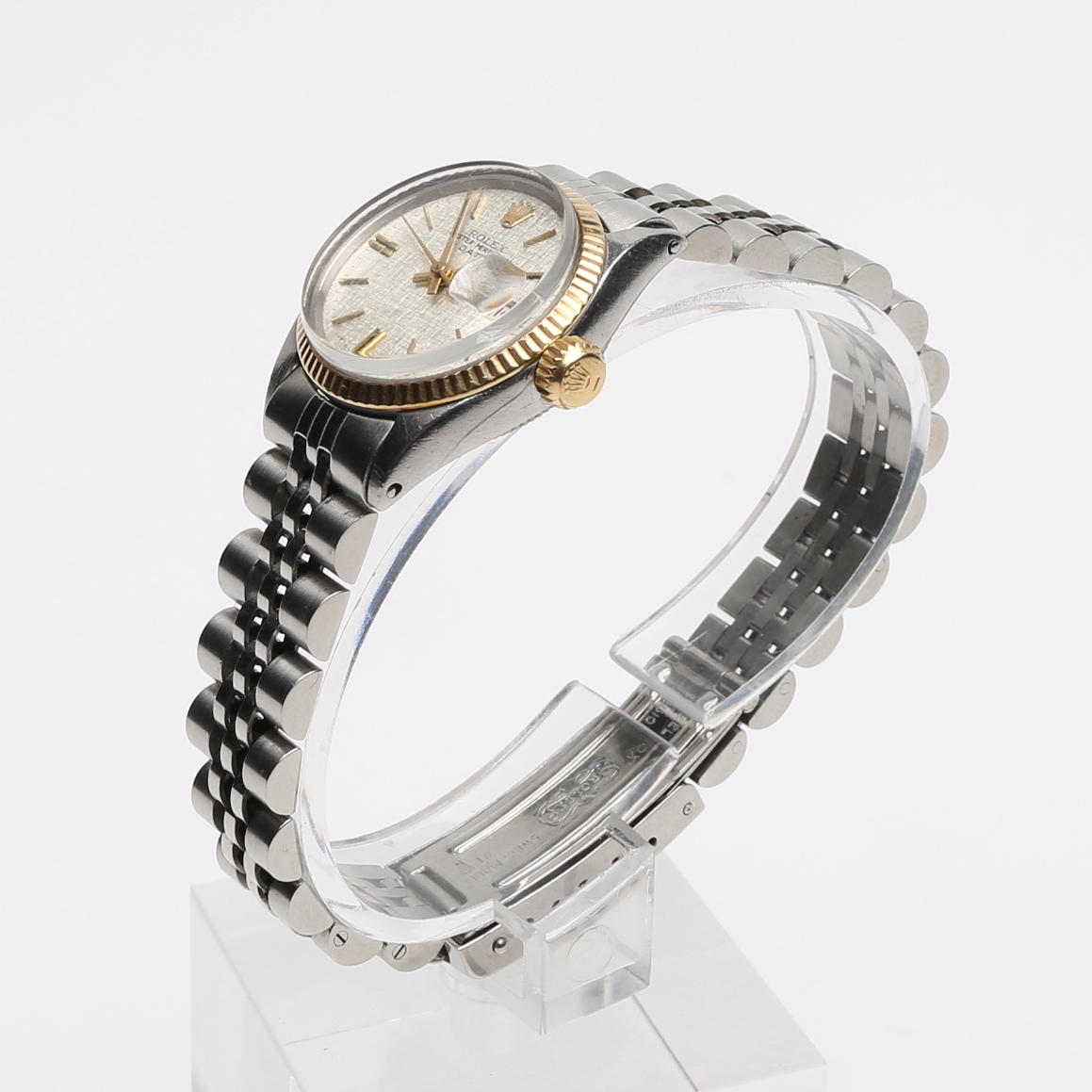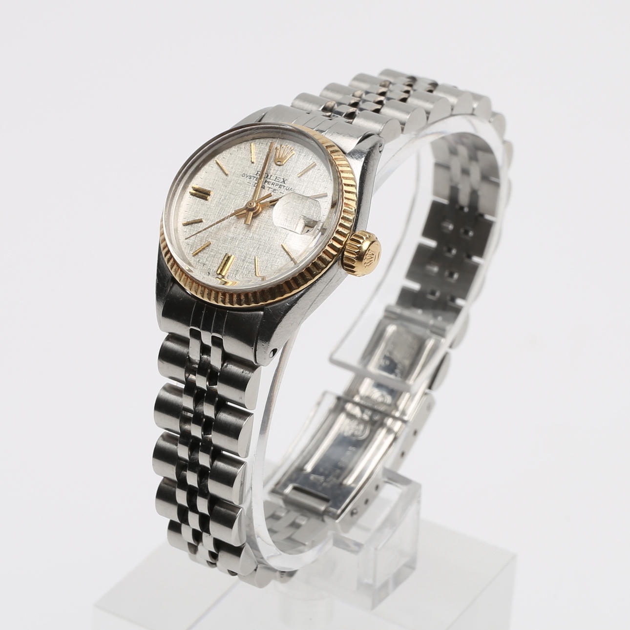 Stål, 1960'erne, plexiglas, automatisk opgave, dato, referencenummer 6917, serienummer 10...243, stålarmbånd, senere ref 62510D/568, diameter 25 mm.