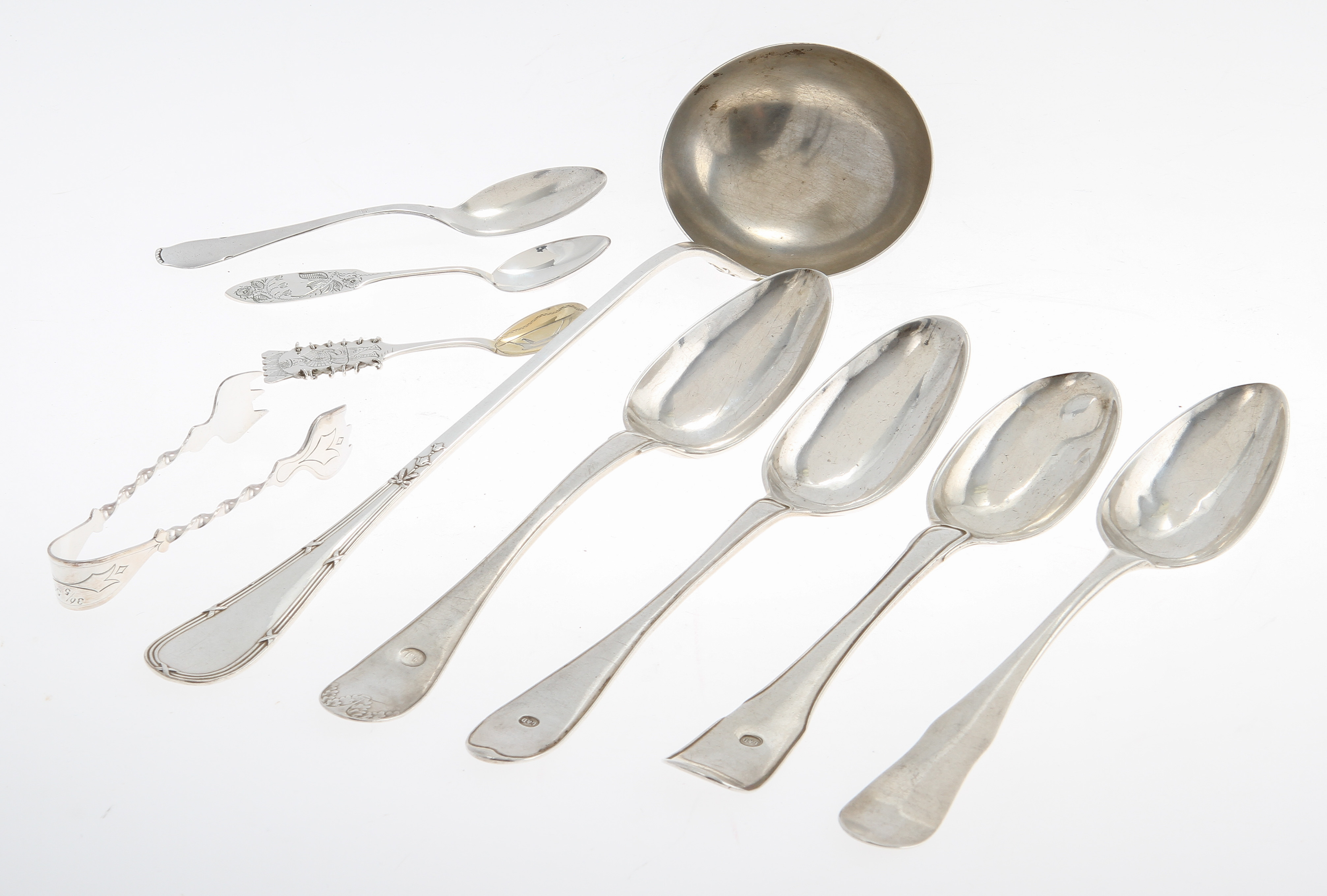 78271. SØLV, 9 dele, 17-1900 tallet, ca. 450 gram.