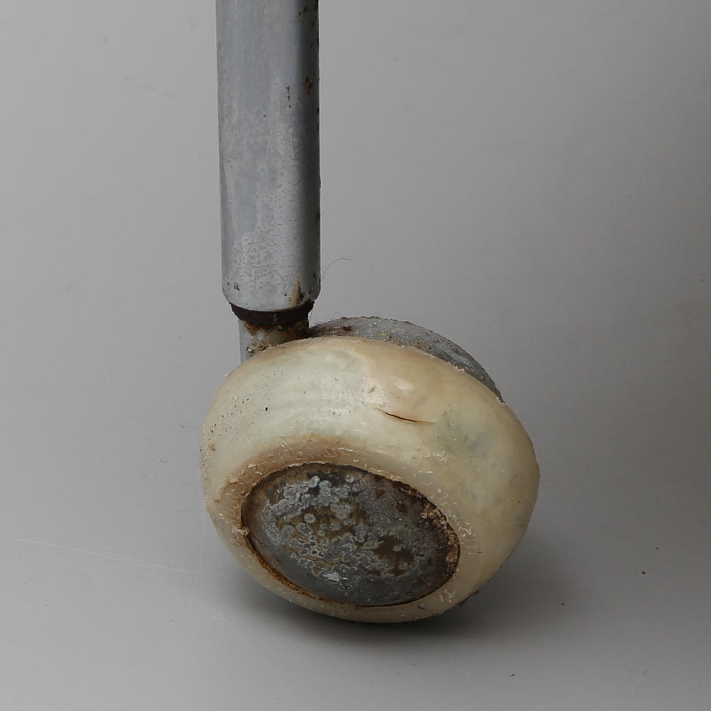 Korrosion, forreste hjulpar kan ikke drejes, stof let snavset.