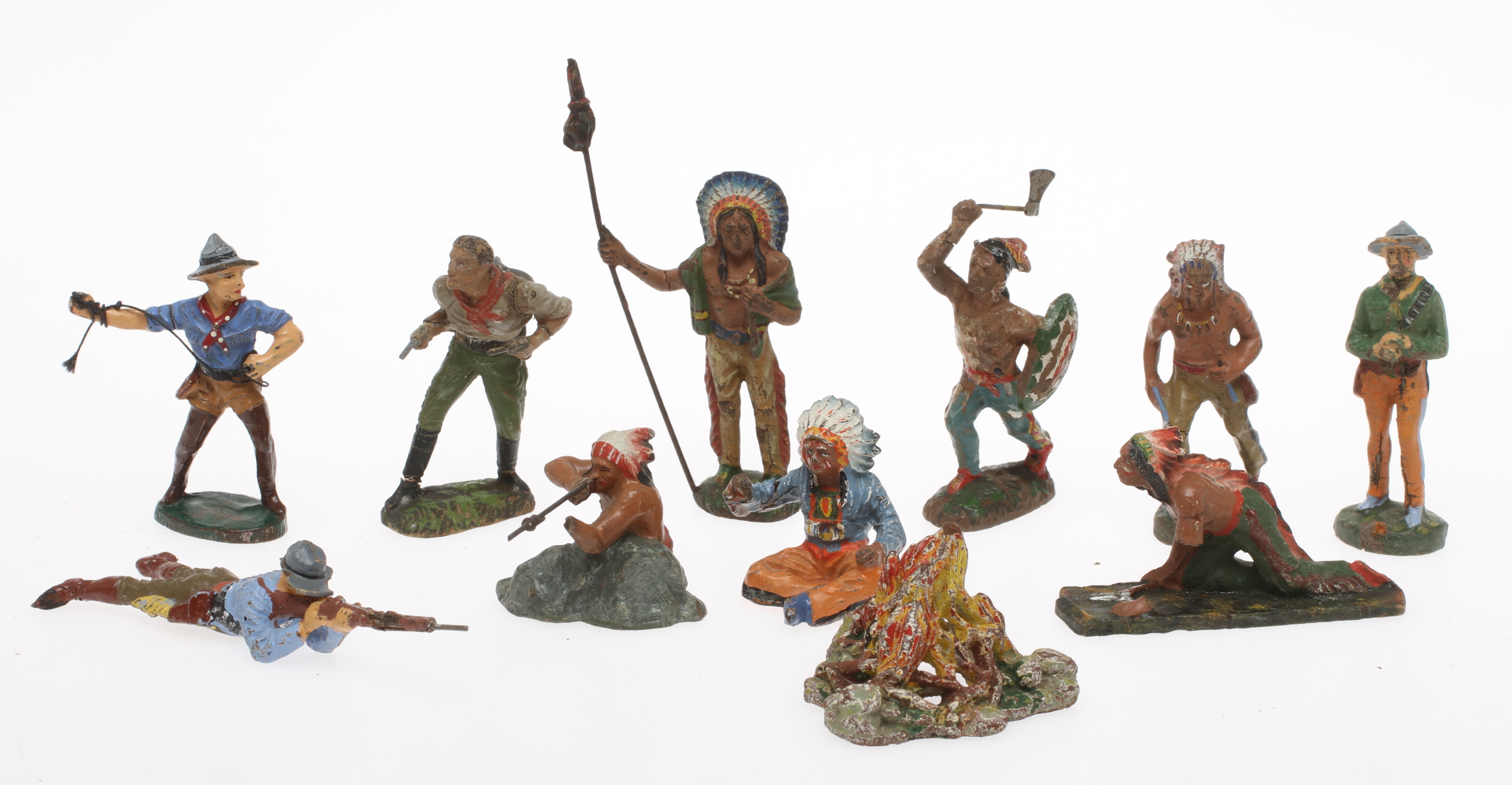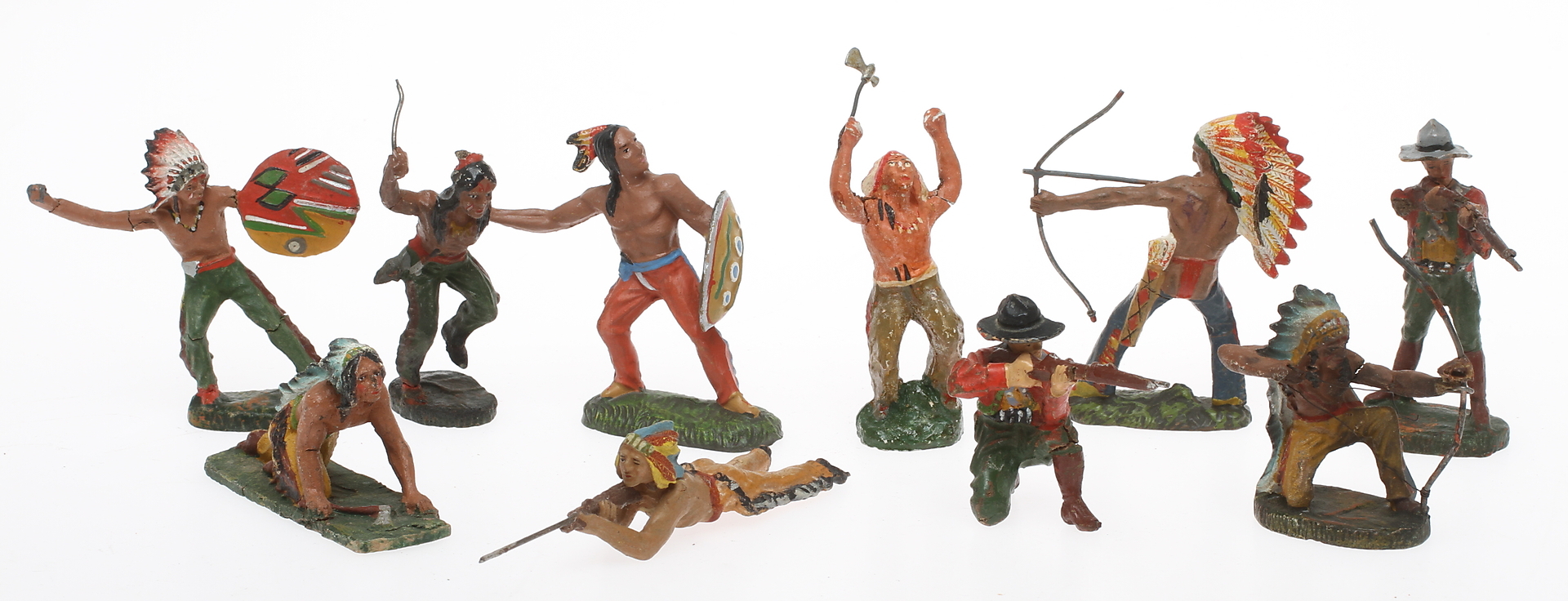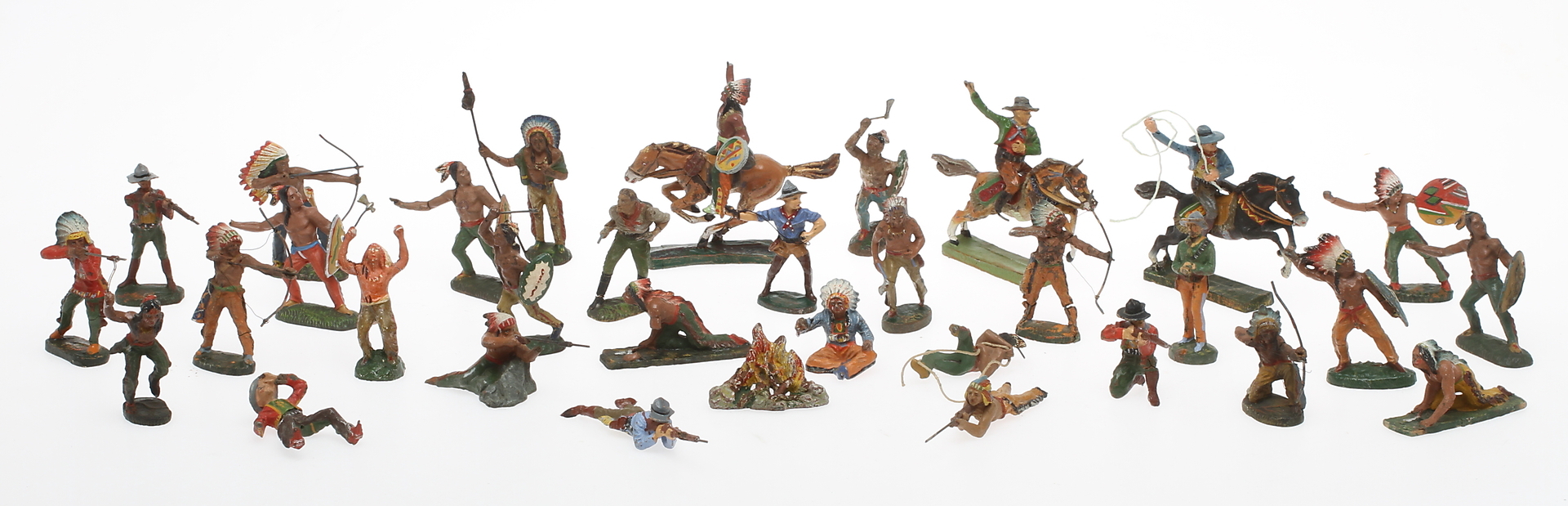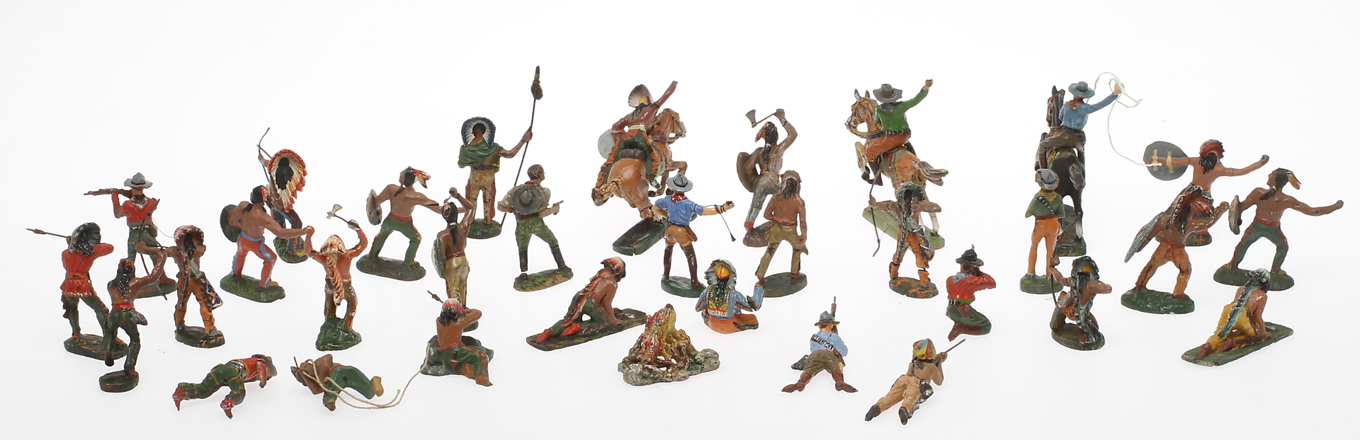 78736. ELASTOLIN WESTERN omkring 30 figurer. Også LINEOL.