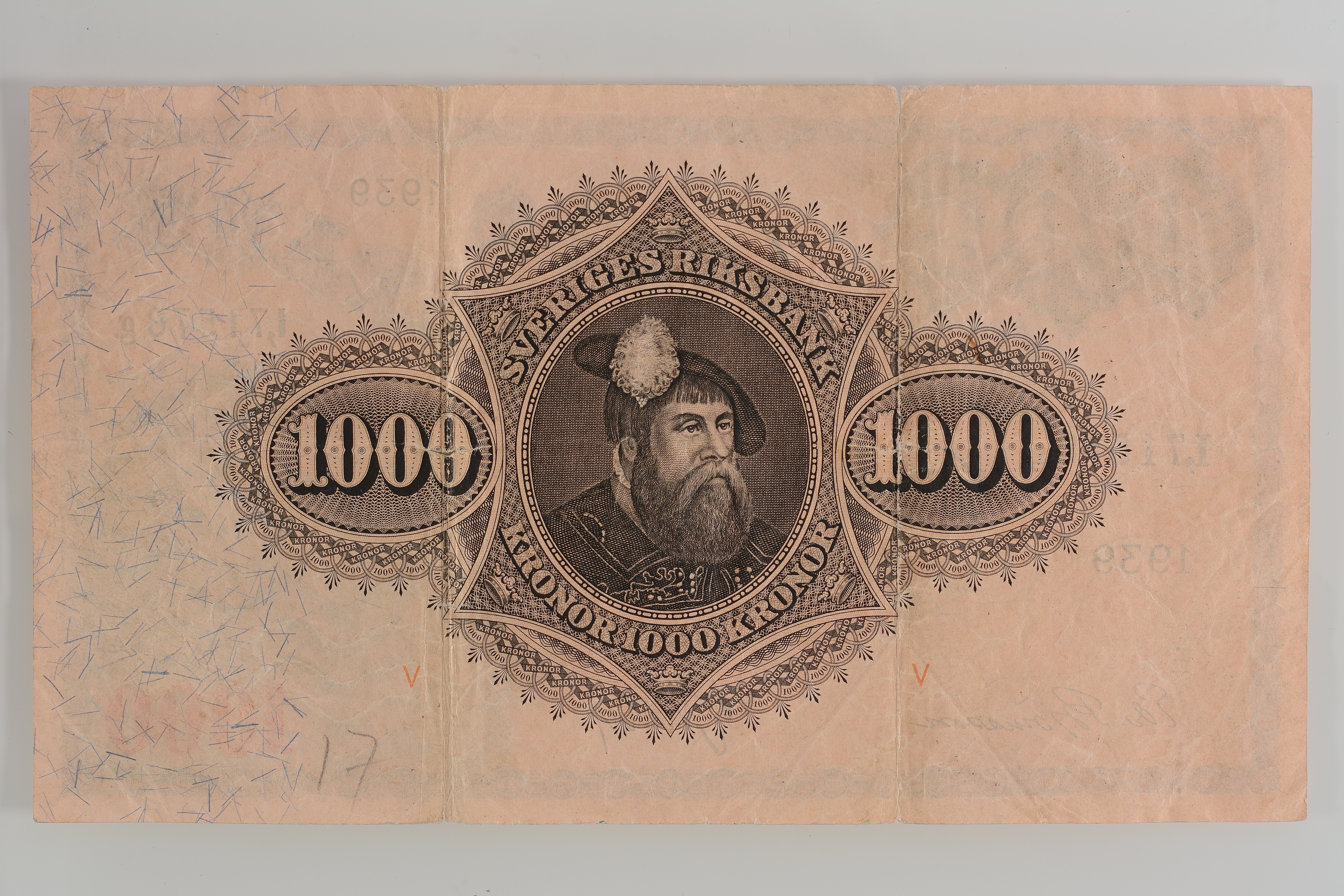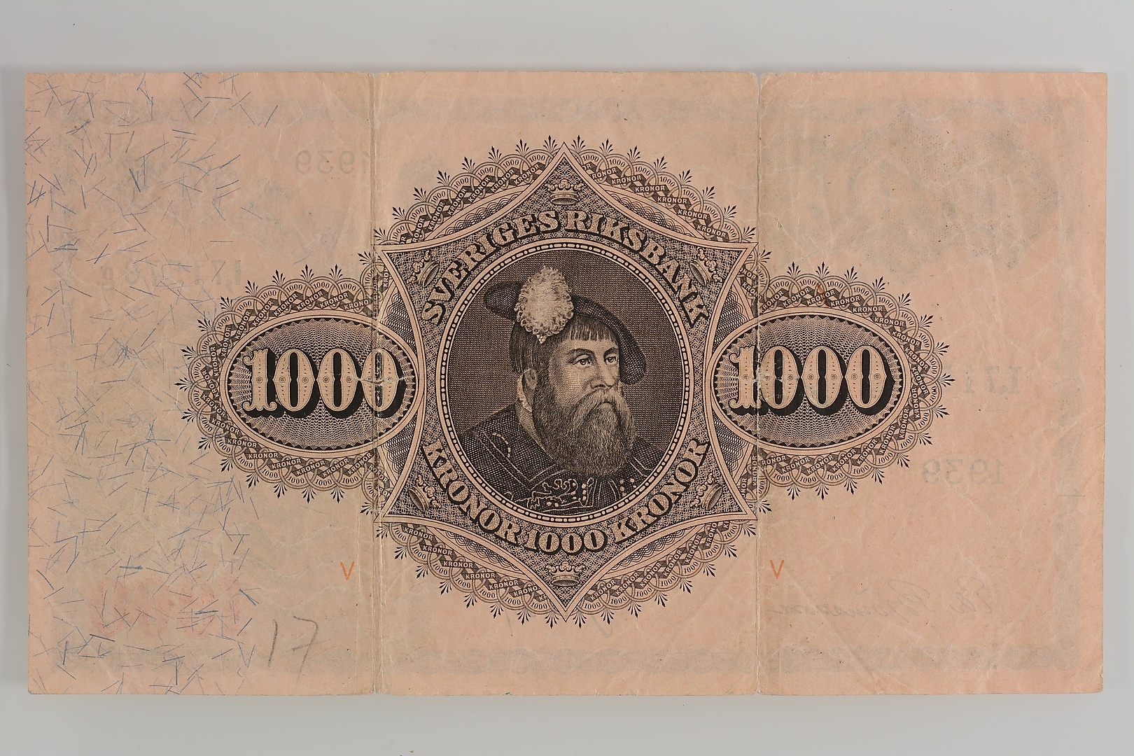 787382. SEDDEL, 1000 SEK, 1939, Sverige.