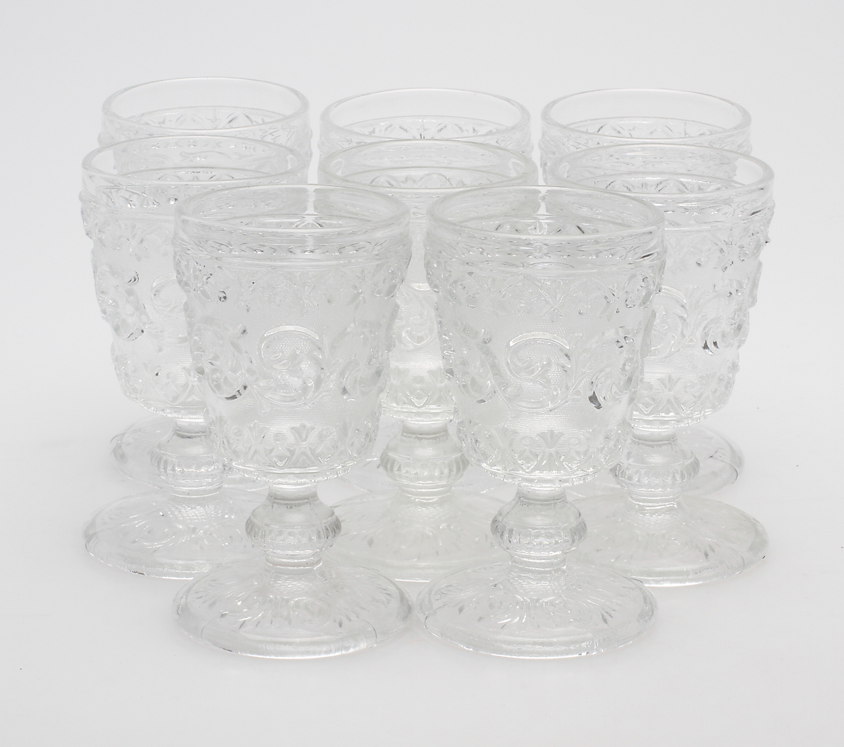78760. VINGLAS, 8 stk, presseglas, 1900-tallet.