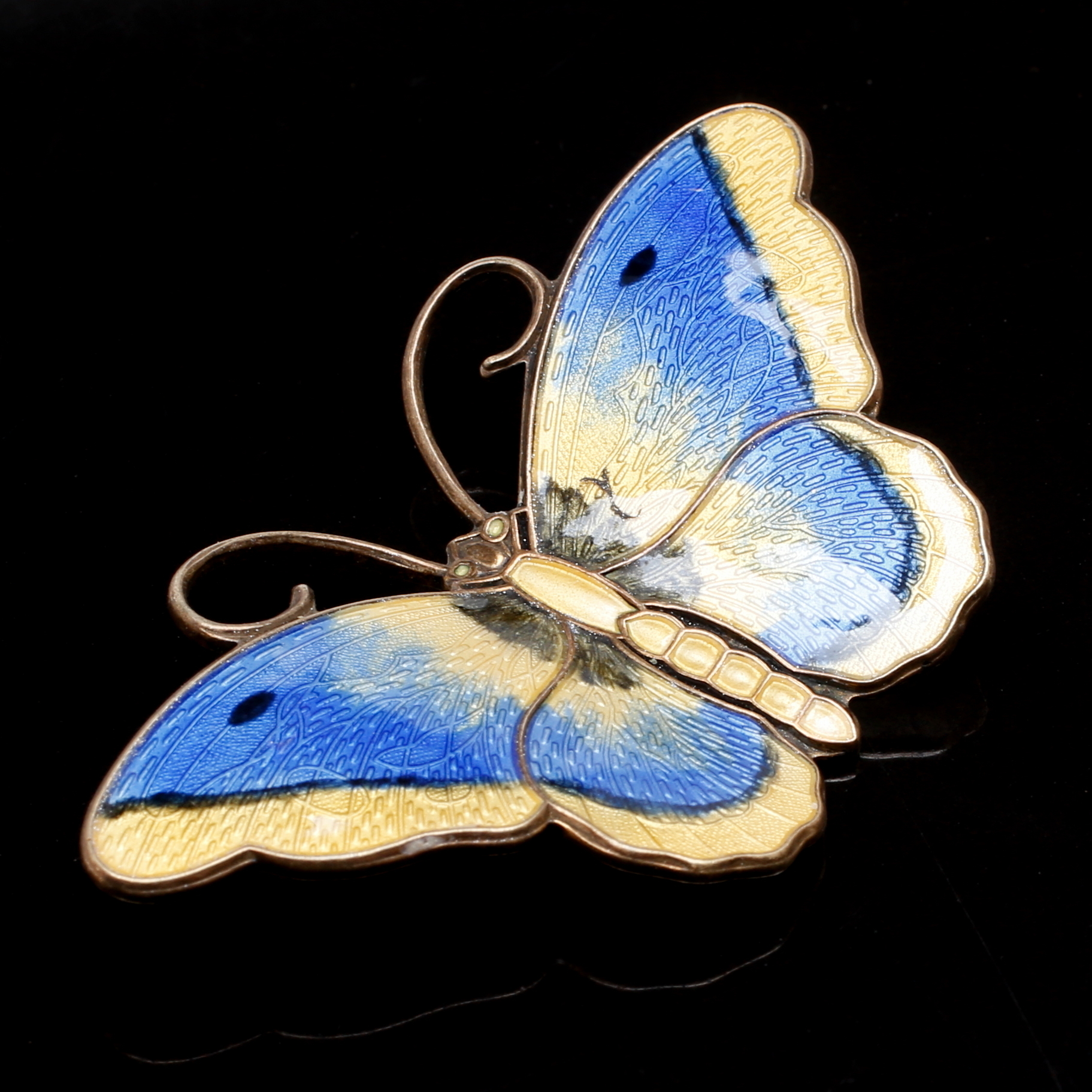 790466. HROAR PRYDZ. Broche, sølv, emalje, sommerfugl.