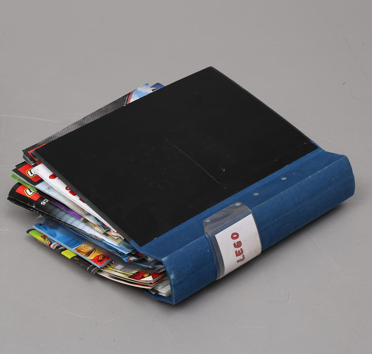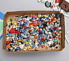 De tomme originale æsker og byggevejledningen hører sammen med de løse lego-stykker.