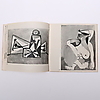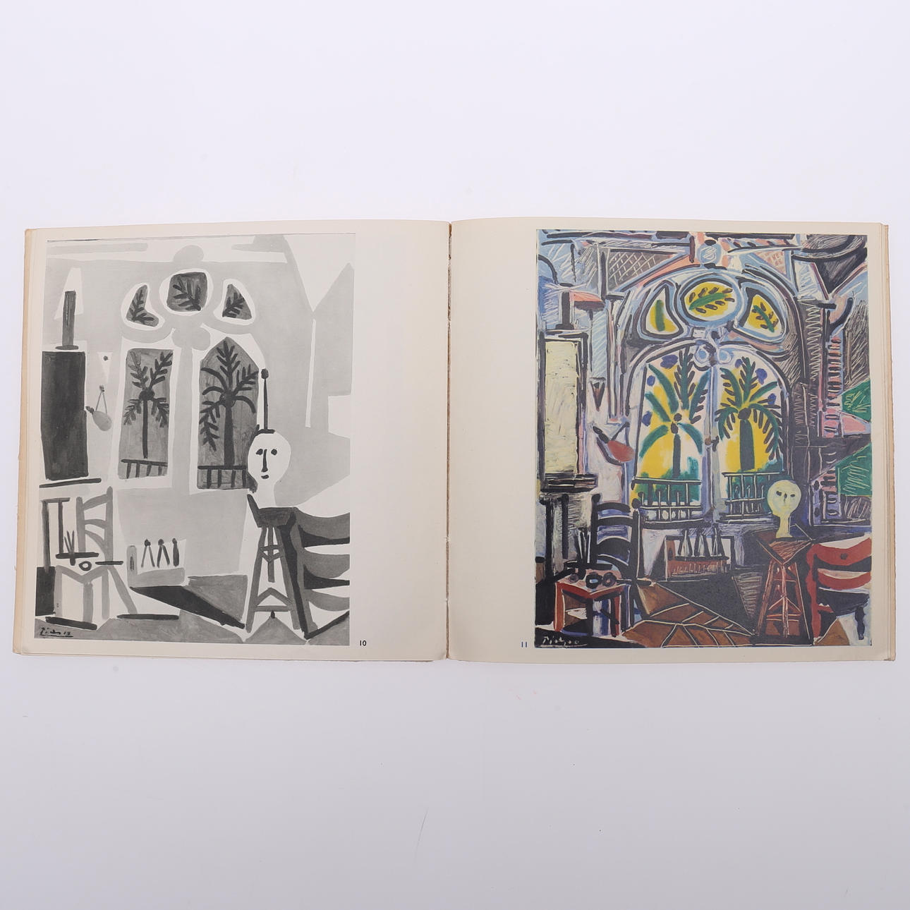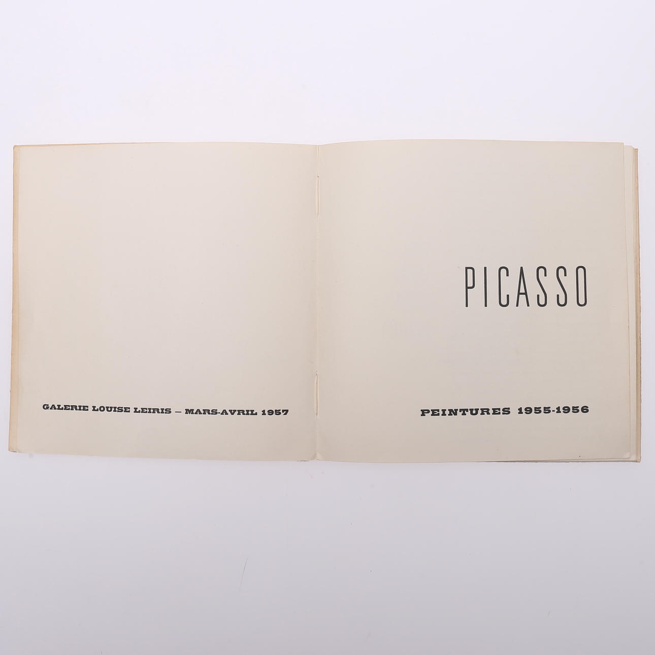 Picasso. Malerier 1955-1956. Galerie Louis Leiris, Paris, marts-april 1957. Hæftet firkantet 8vo katalog hvor omslaget er et originalt litografi af Pablo Picasso udført specielt til dette katalog og trykt af Mourlot Frères i Paris. Forord af Daneil-Henry Kahnweiler og 50 reproduktioner i sort-hvid (mest) og farver.