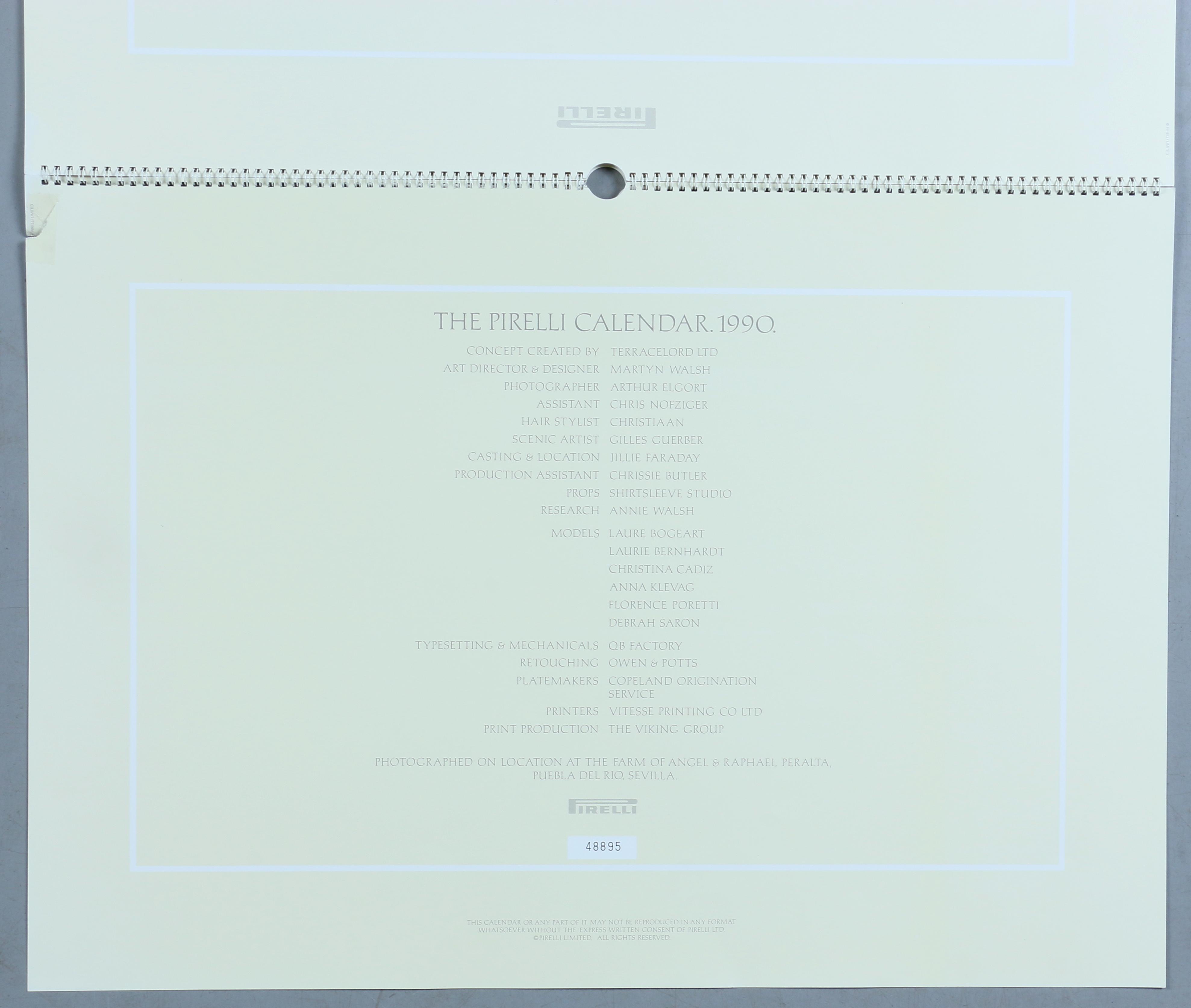 802111. PIRELLI, kalender 1990, olympisk tema.