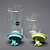 2 glas med plastlåg, højde 15 - 21 cm.