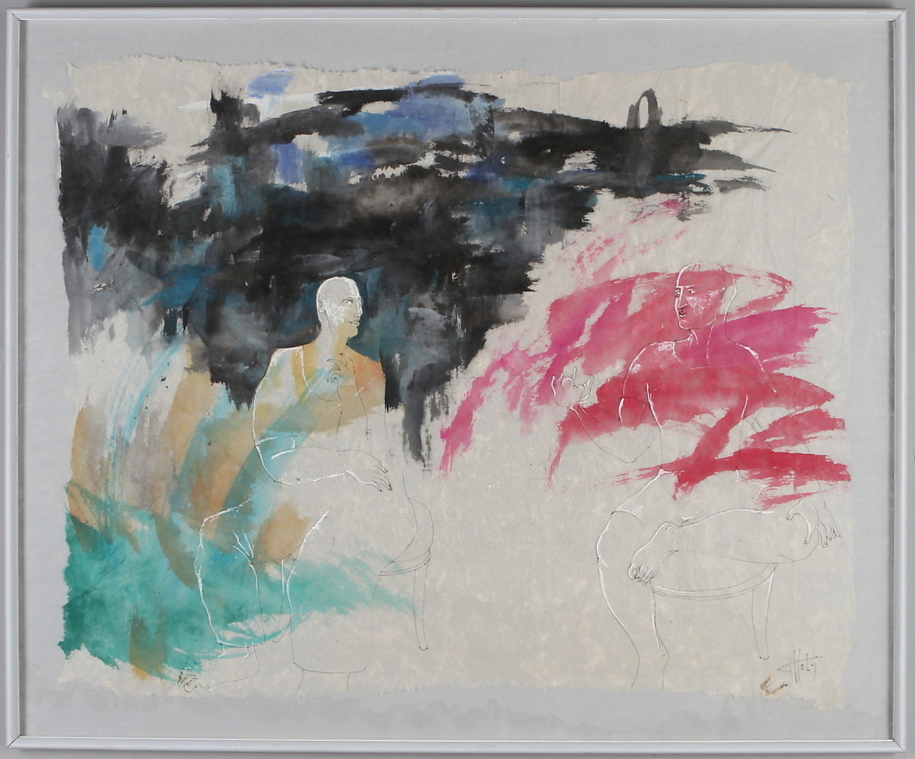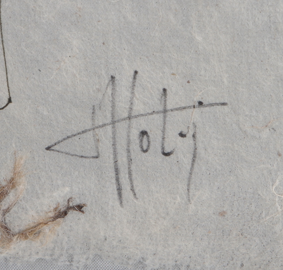 80534. THOMASZ HOLUJ. Komposition, mixed media, signeret.