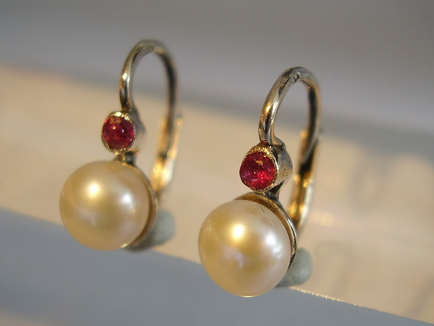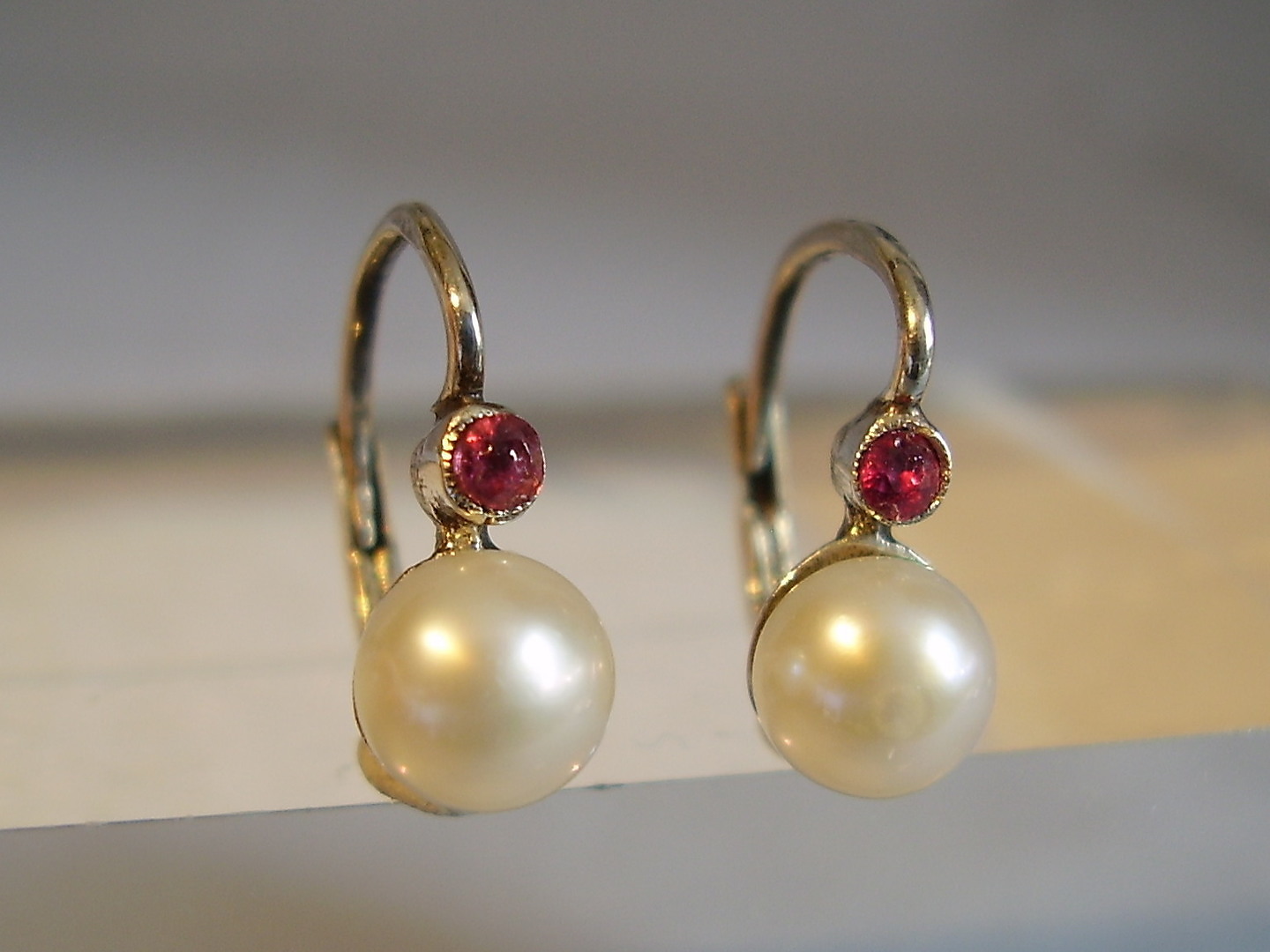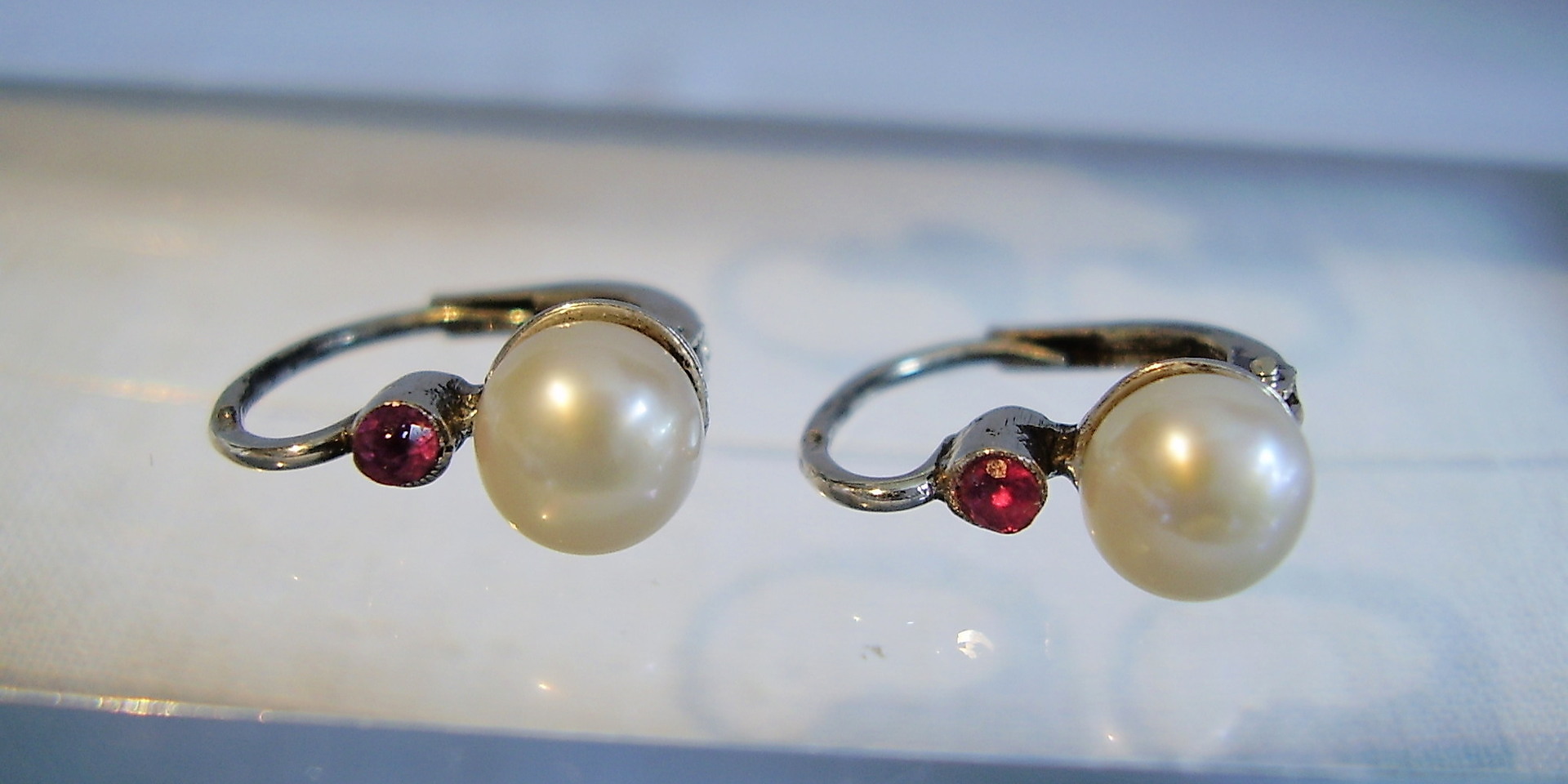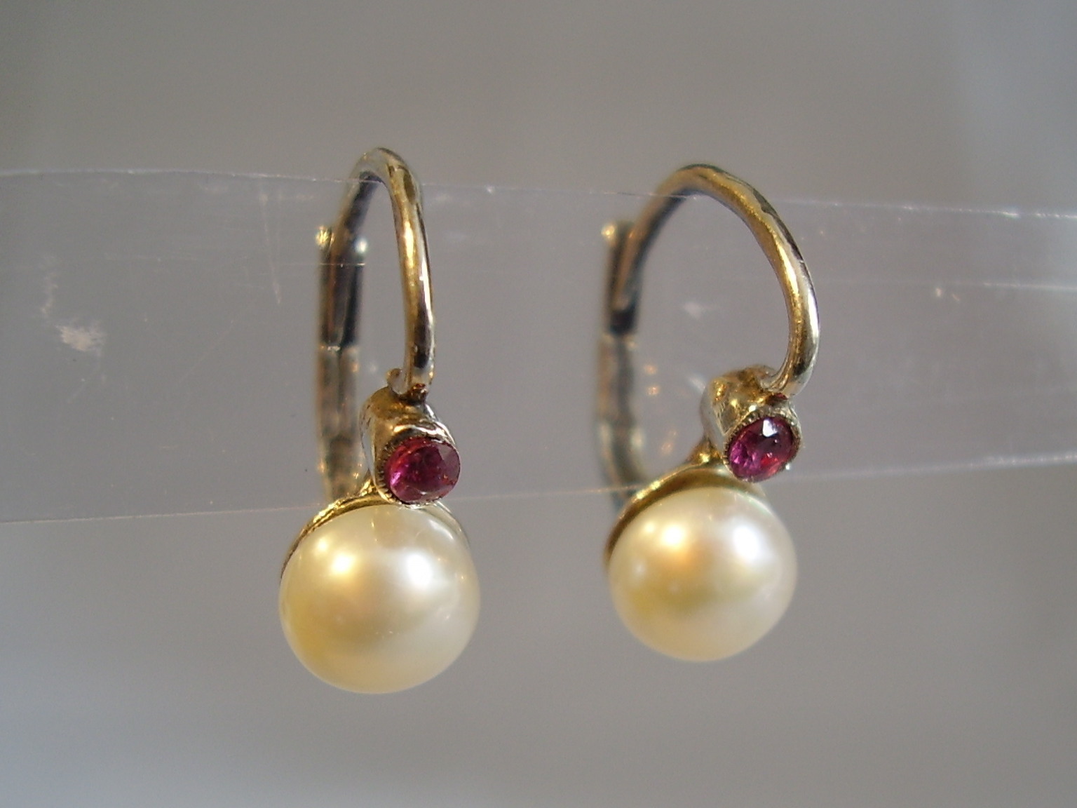 806015. ØRERINGE ANTIK RUBY + PERLE.