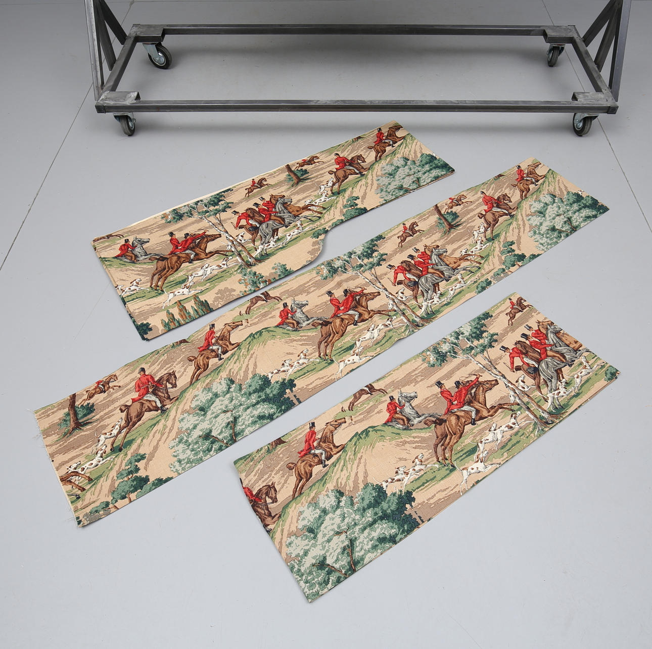 Frakke, foret, lige. Bredde ca 176 cm. Højde ca 35 cm (ikke opsømt på den ene kortside).