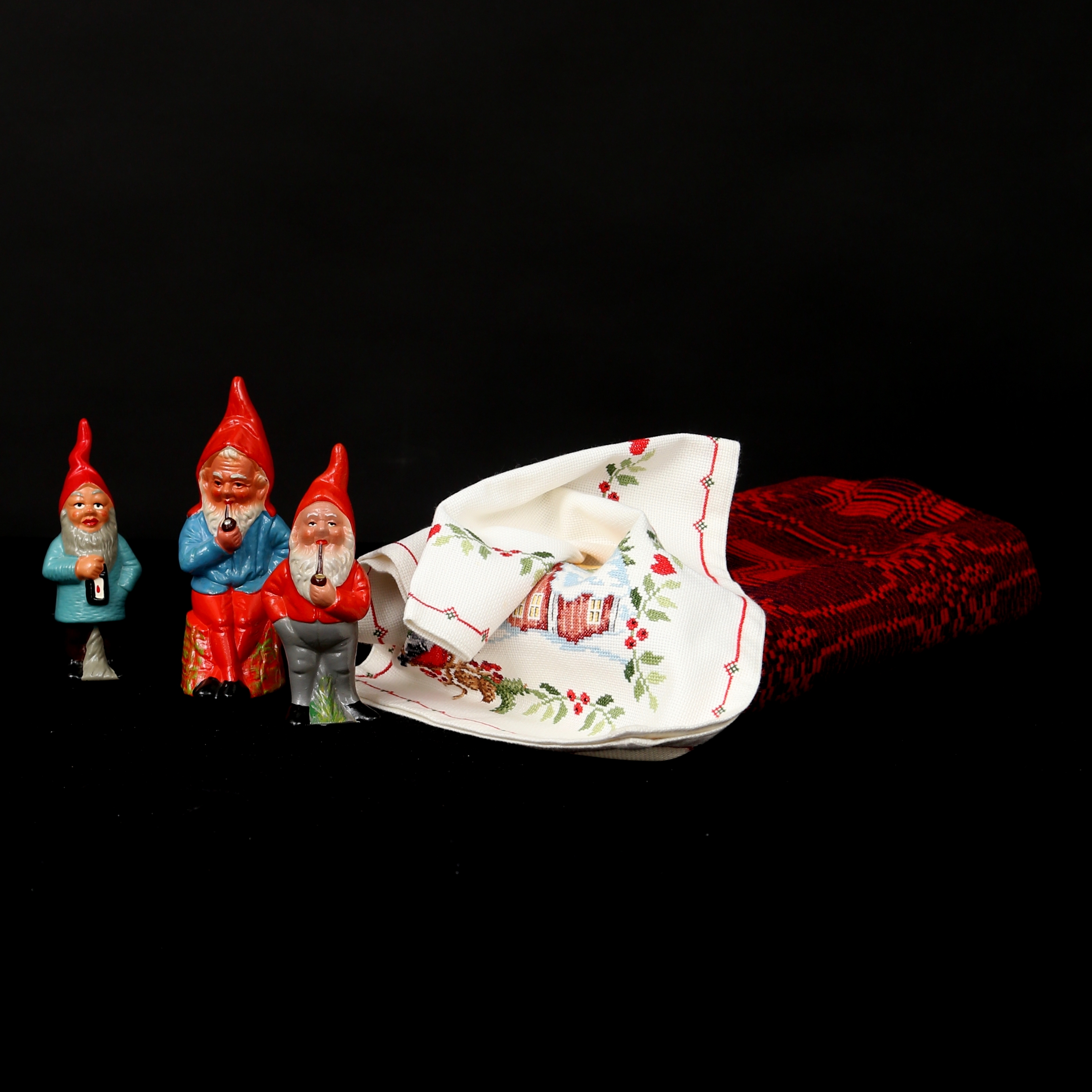 812184. JULEPYNT, 5 dele tekstil og keramik, 1900-tallet.