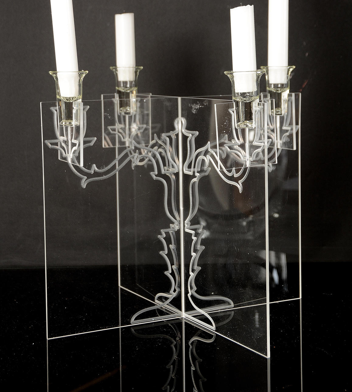 820283. JOHN RUSSEL. Kandelaber, "Ghost Candelabre, akryl/glas.