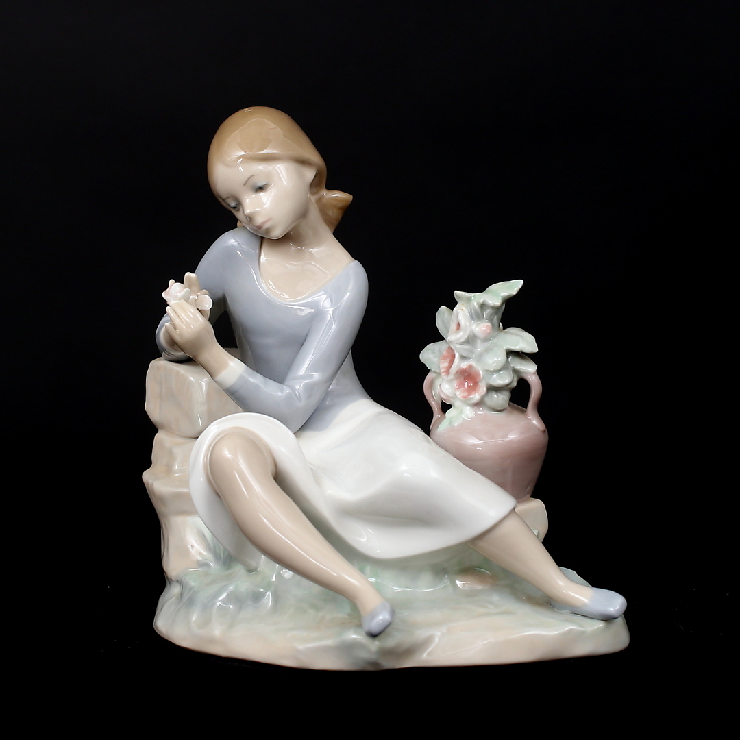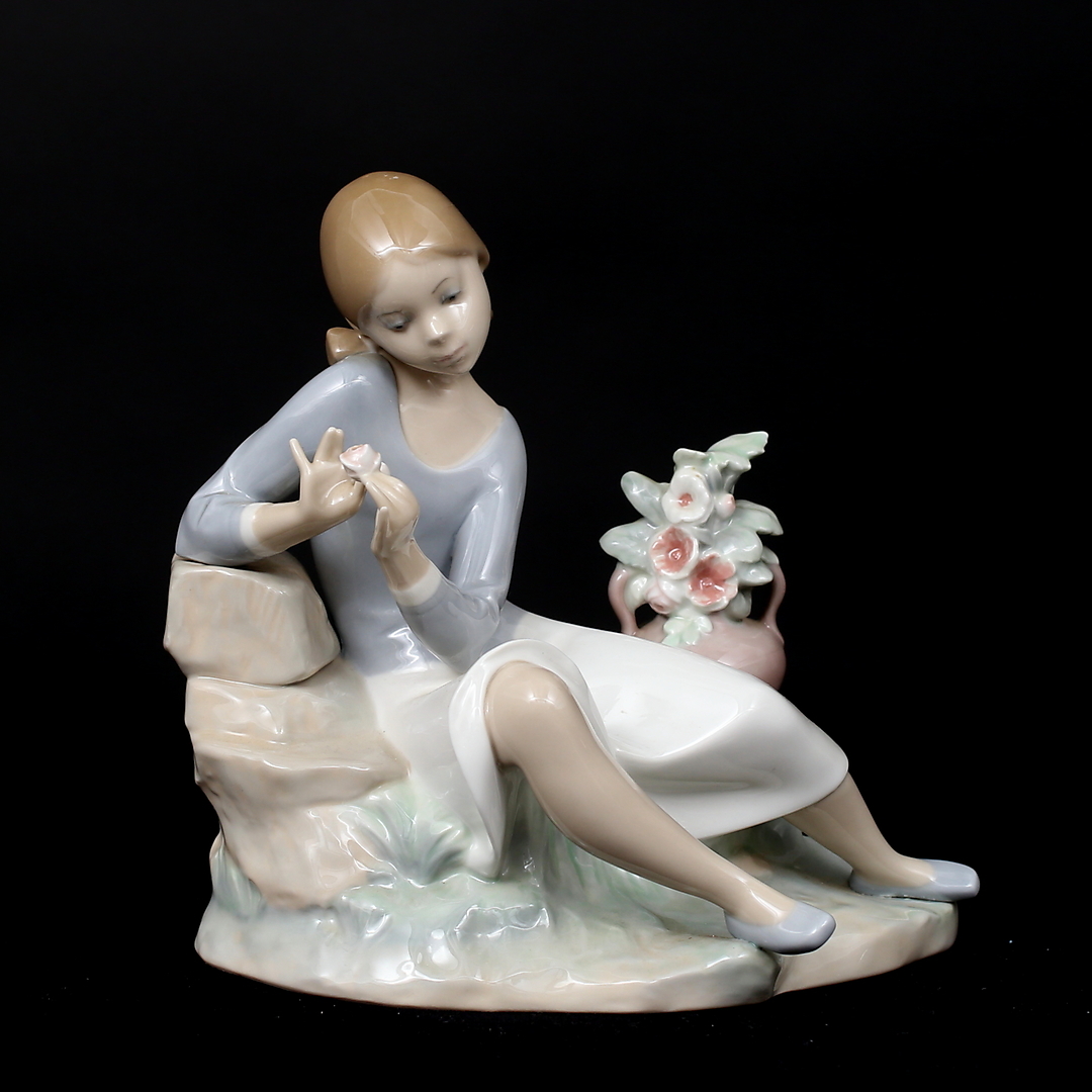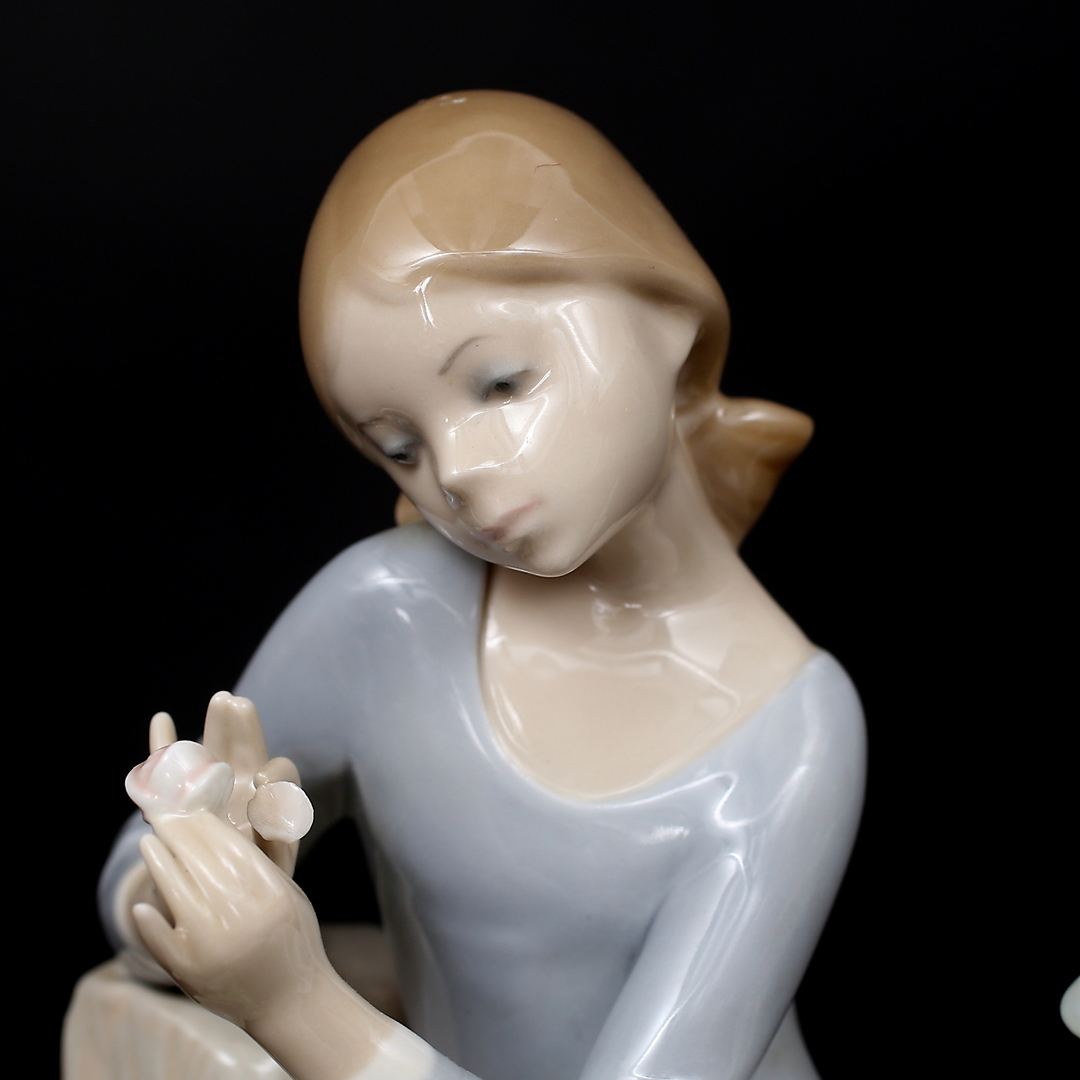 830288. FIGUR, porcelæn, pige med blomst, Lladro, Spanien.
