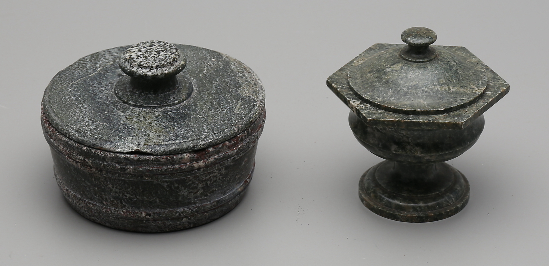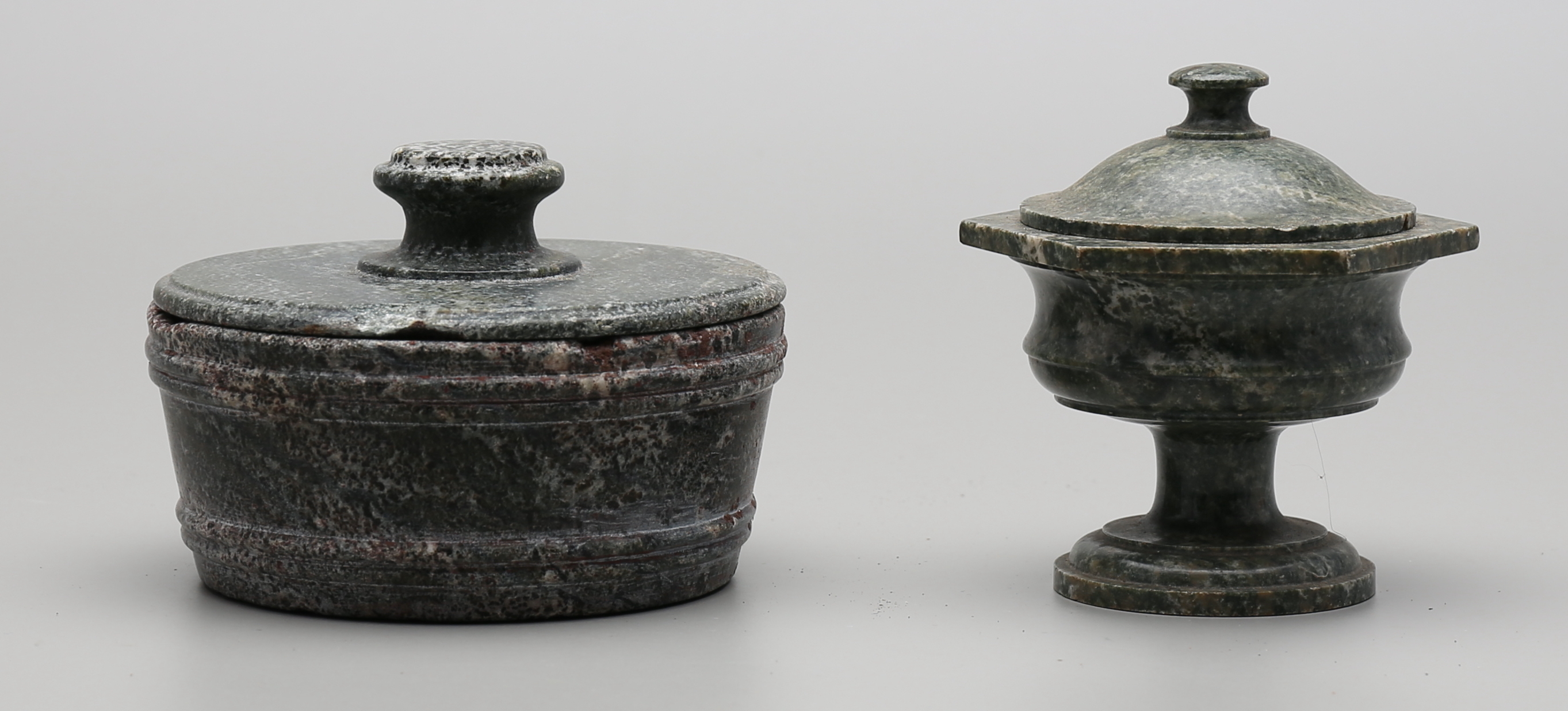83638. SMØR ASK og URNA, Kolmårdsmarmor, 1800-tallet.