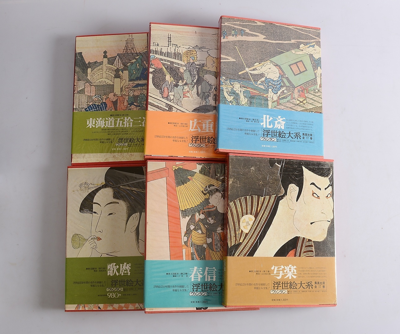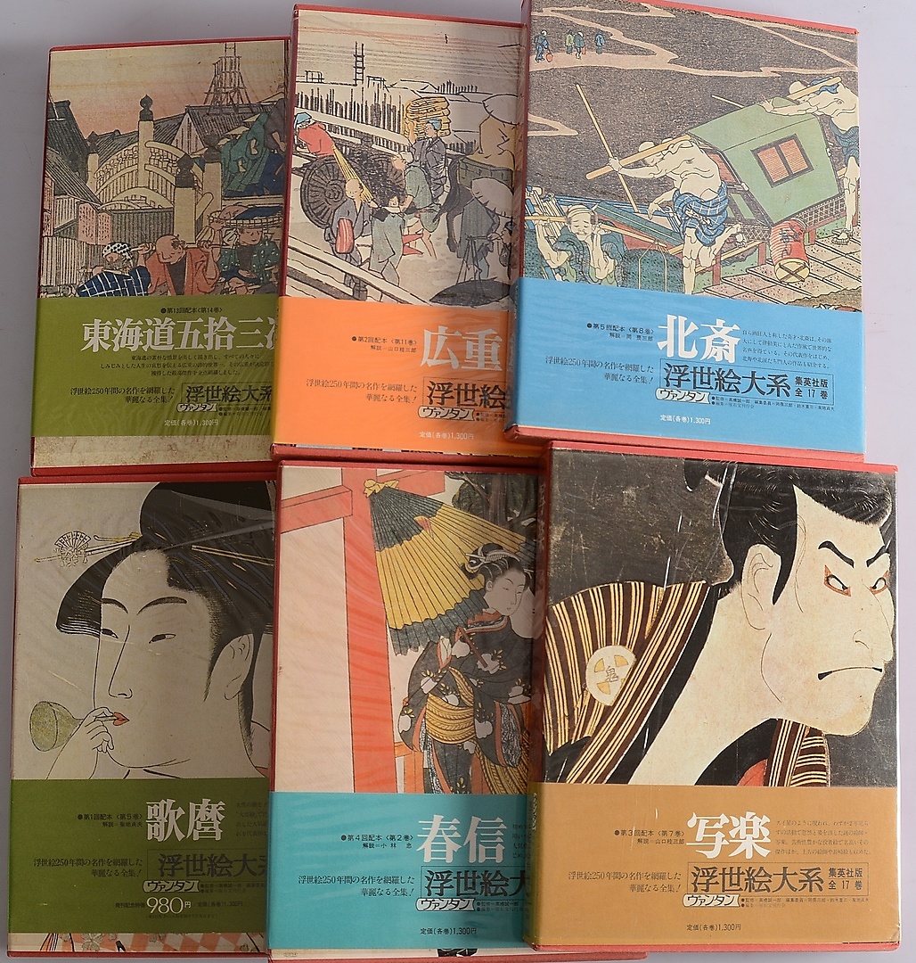 841159. BØGER, 6 bind, japanske træsnit.