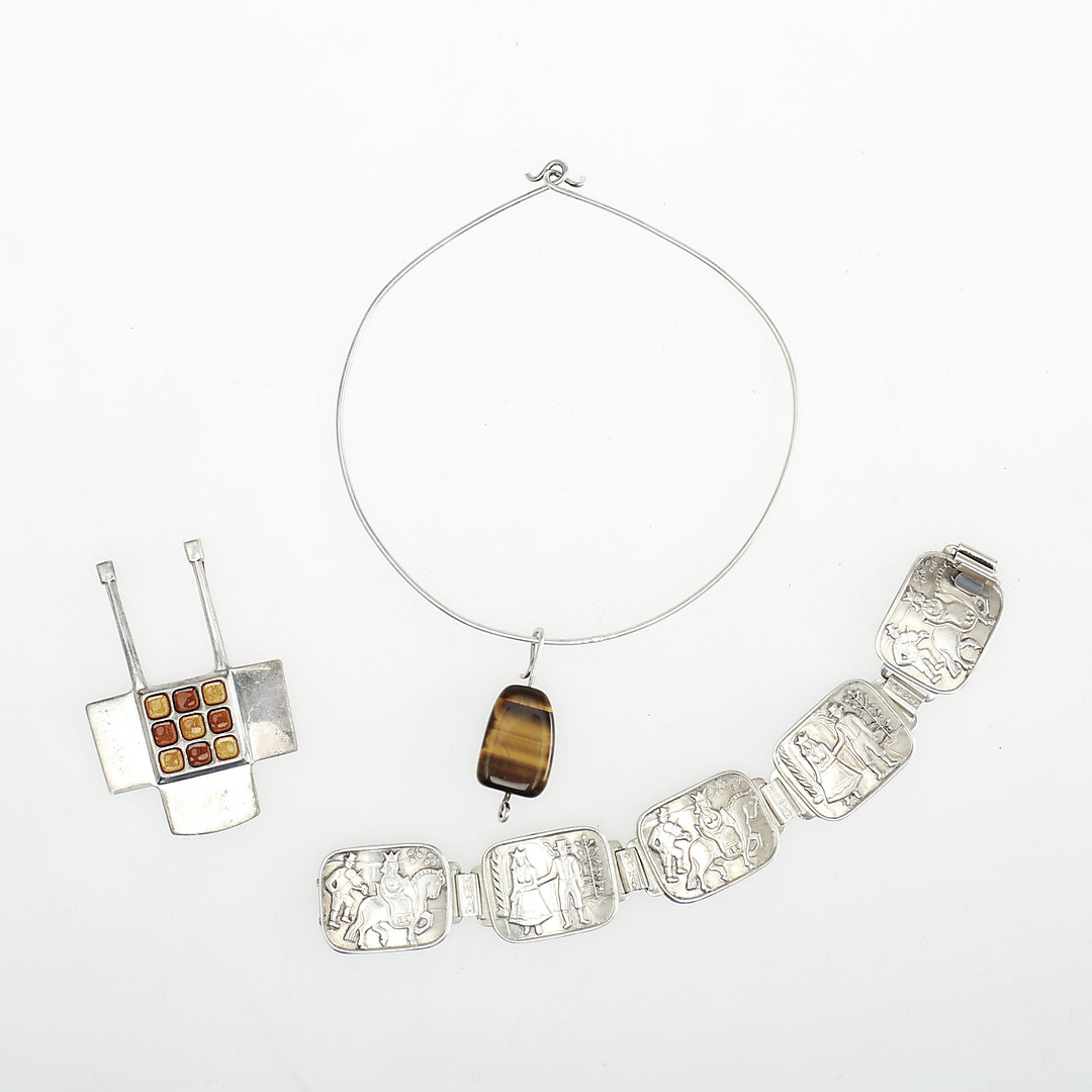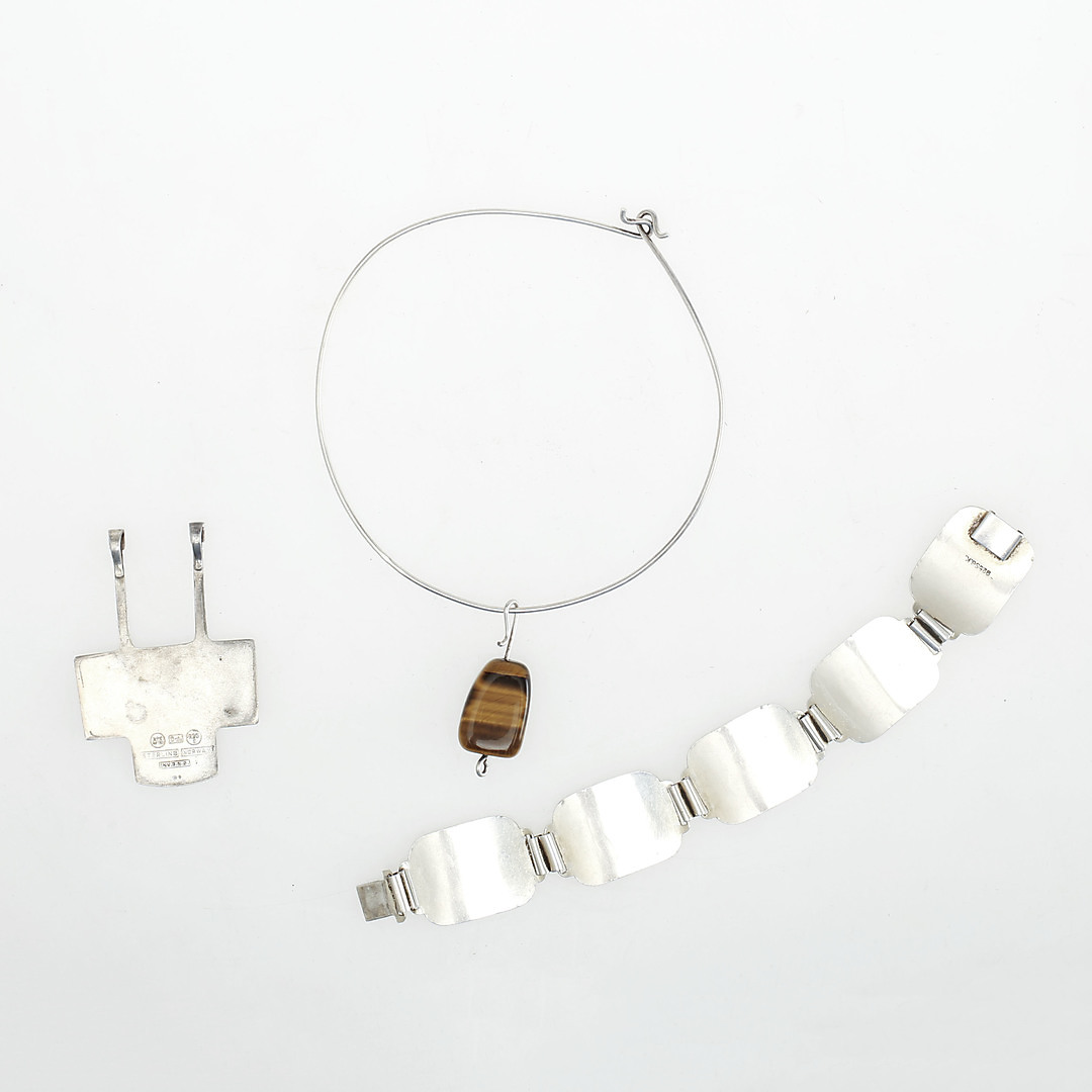847480. HÆNG David Andersen, ARMBÅND Norge og HALSKÆDE Tesi, sølv.