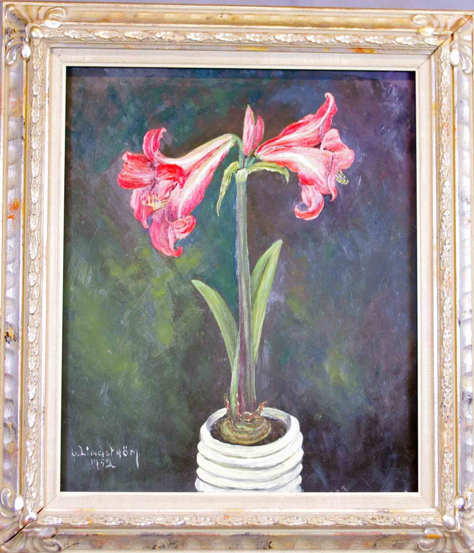 84794. LINDSTRÖM. Amaryllis, olie på Panel.