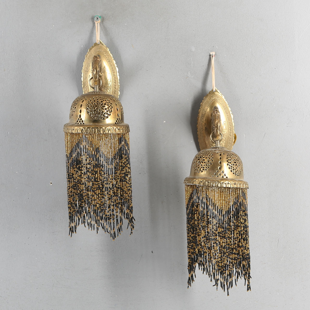 851877. Et par VÆGLYGTER, messing, perlefrynser, 1900-tallet.